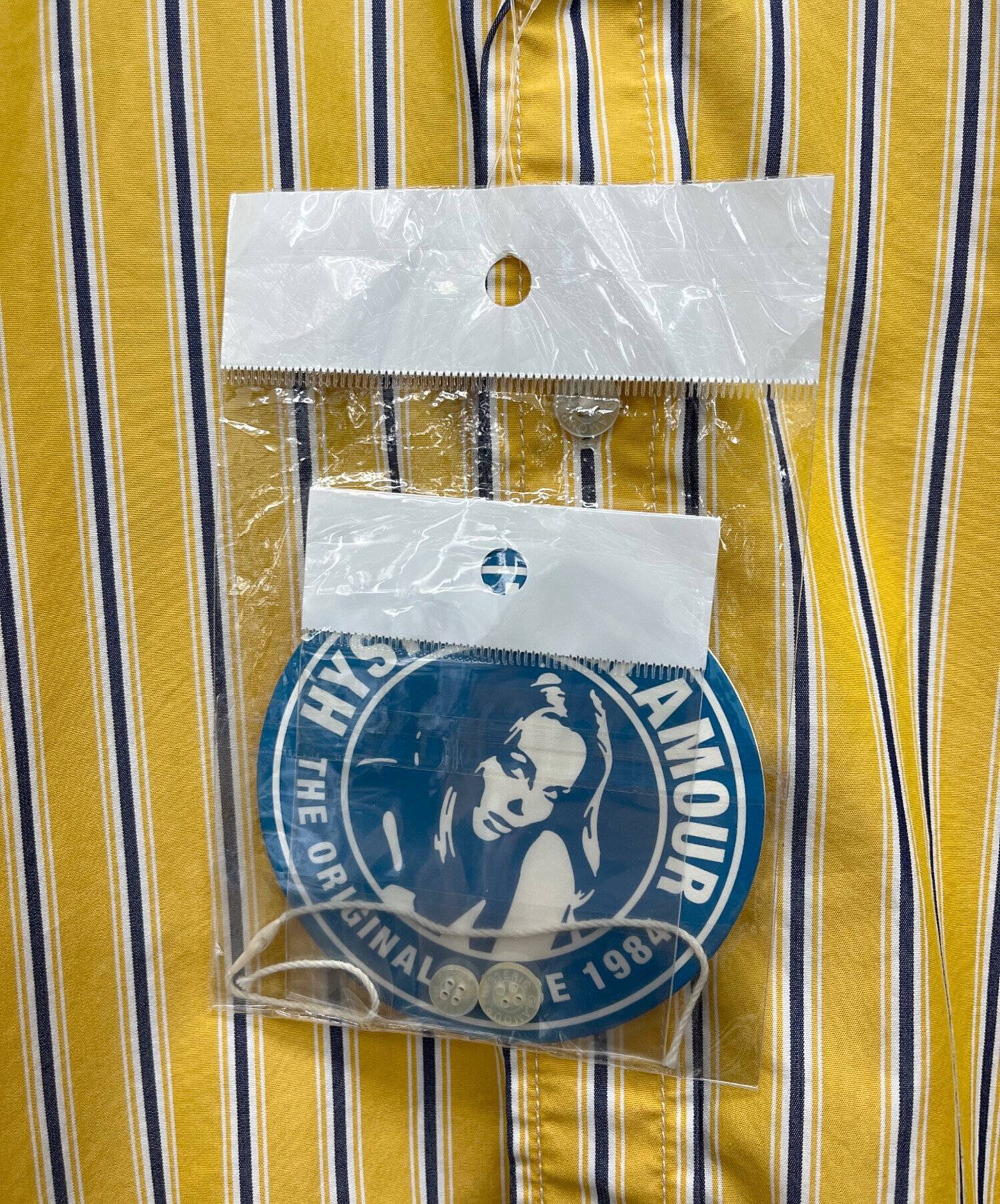 • Hysteric Glamour(ヒステリックグラマー)Hysteric Glamour (ヒステリックグラマー) TIMES刺繍 ランダムストライプ ボタンダウンシャツ イエロー サイズ:Mの古着・服飾アイテム タグ付
