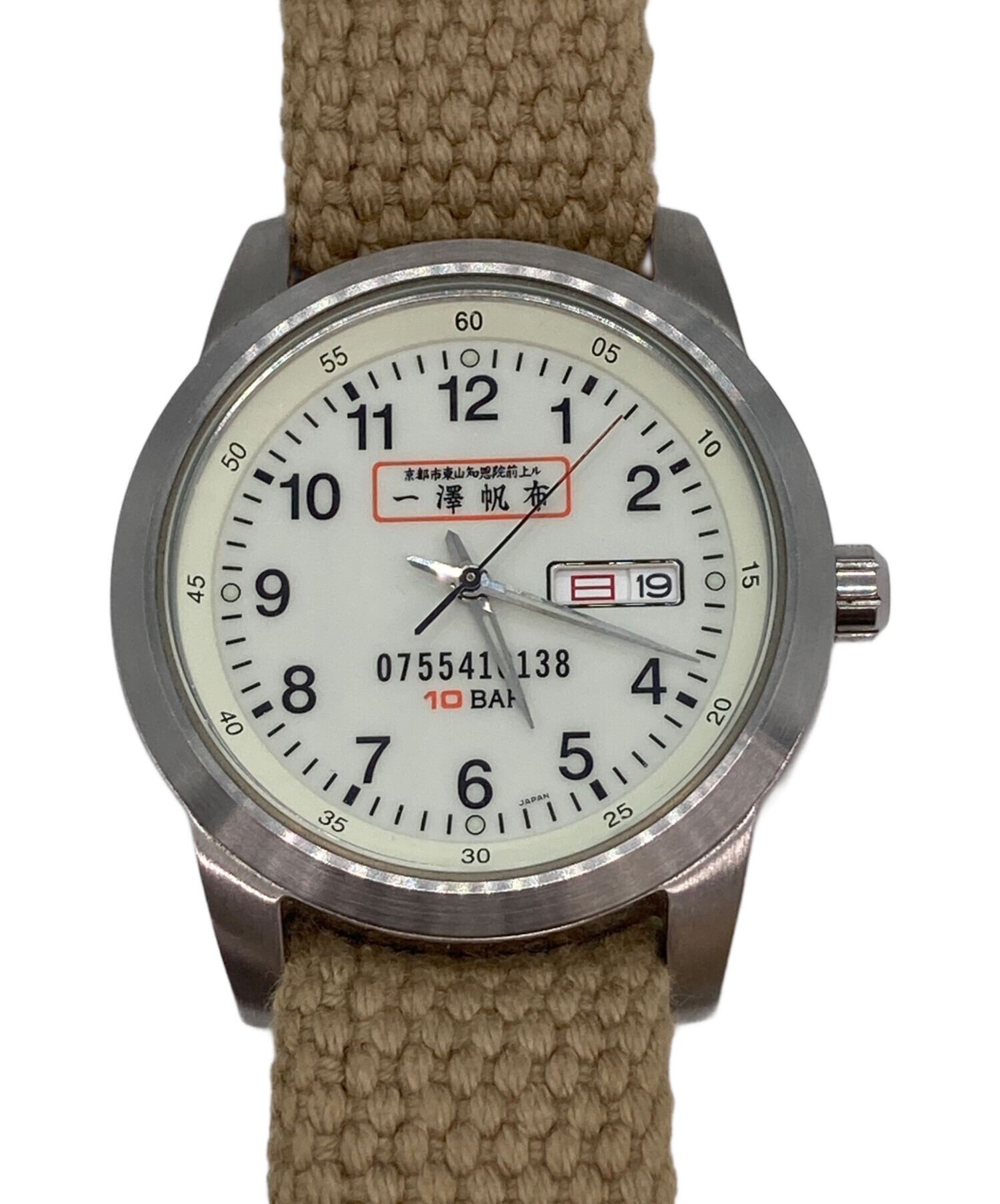 | スタッフコメント | 一澤信三郎帆布の前身である一澤帆布のリストウォッチです。ベルト部分には丈夫な帆布素材が使用されており、長く使っていただける仕様です。 また、文字盤は曜日表記が漢字となっており、日本伝統の帆布とともに日本らしさの感じられるアイテムです。 |