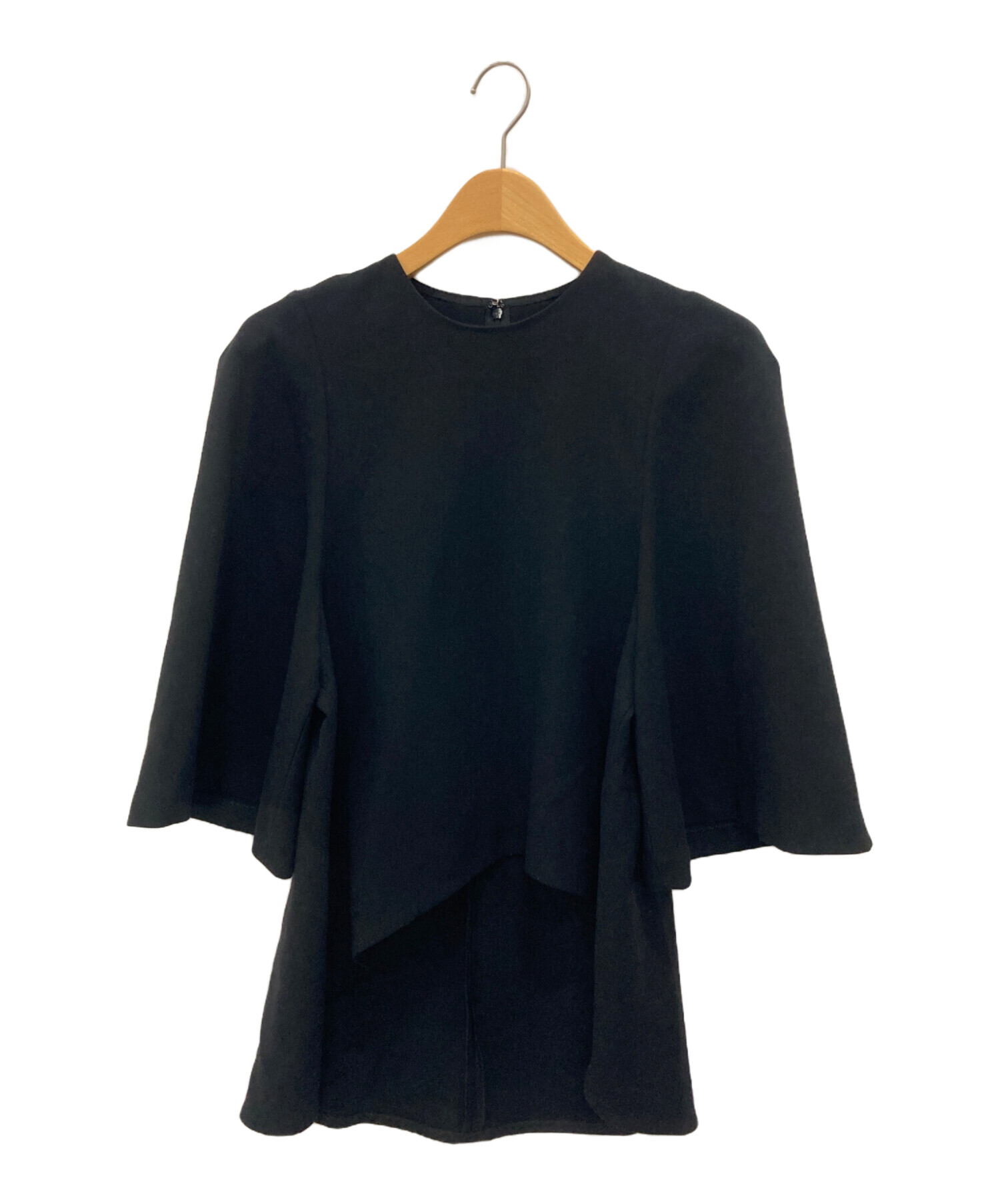 スタッフコメント さらりとした生地を使用したクルーネックブラウスです。袖口に向かって広がったベルスリーブがポイントです。前後差のある着丈もアクセントになっております。