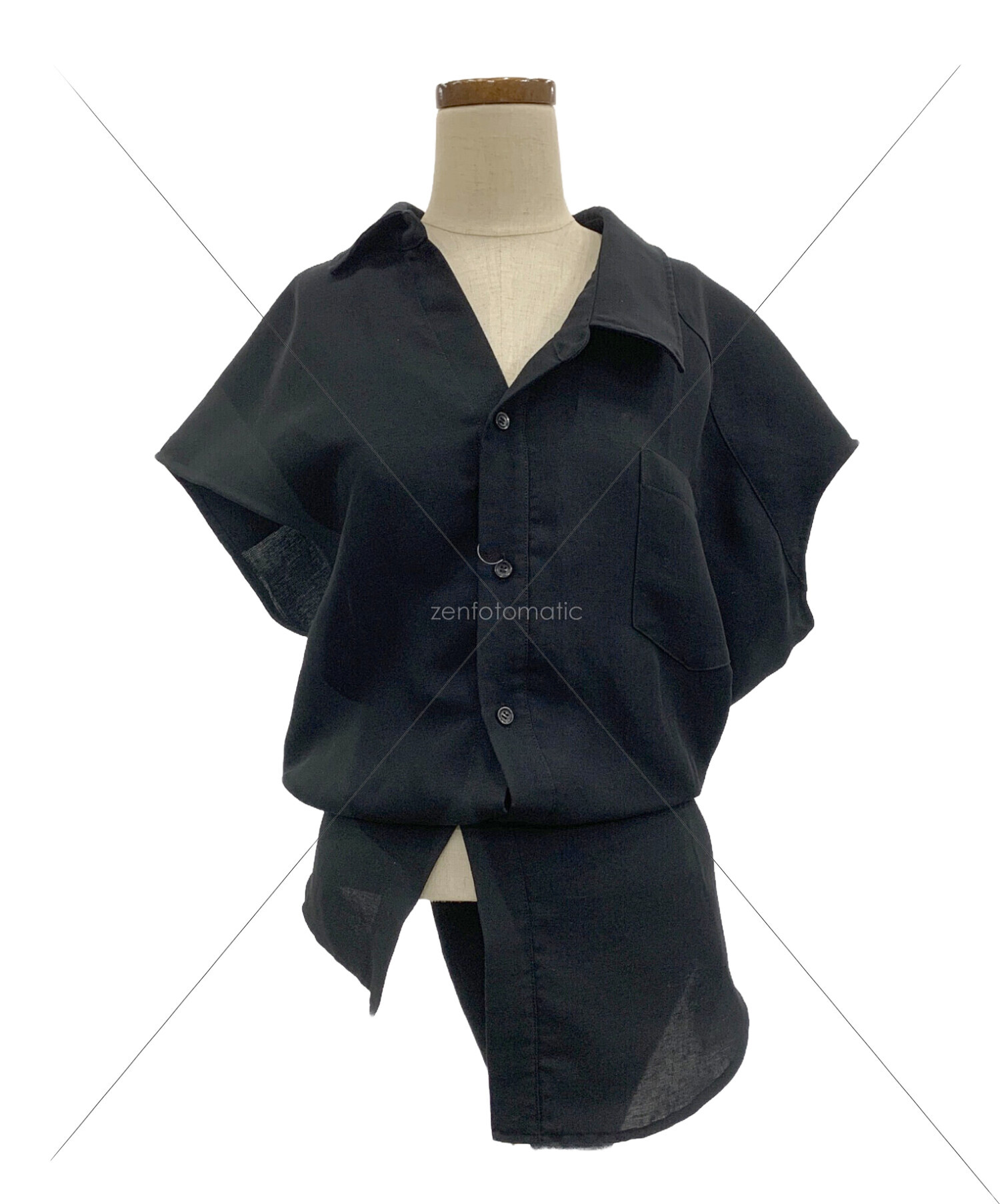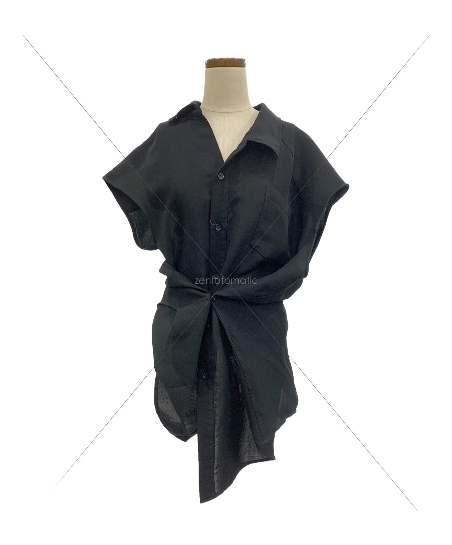 | スタッフコメント | さらりとした生地を使用したレギュラーカラーシャツです。左右非対称なアシンメトリーデザインがポイントです。サイドボタンの付け方によって、お好みのシルエットが楽しめるアイテムです。 |