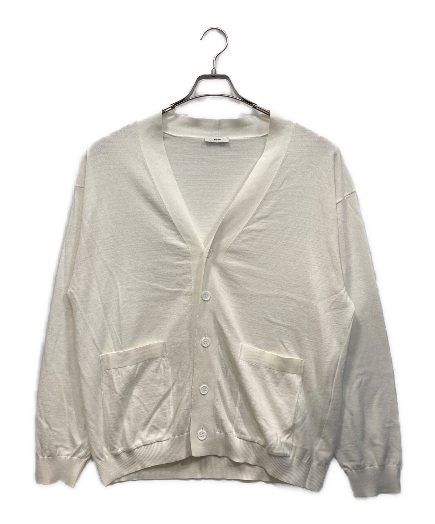 • ATON(エイトン)ATON (エイトン) FRESCA KNIT オーバーサイズカーディガン ホワイト サイズ:SIZE 04の古着・服飾アイテム 袖口シミ有