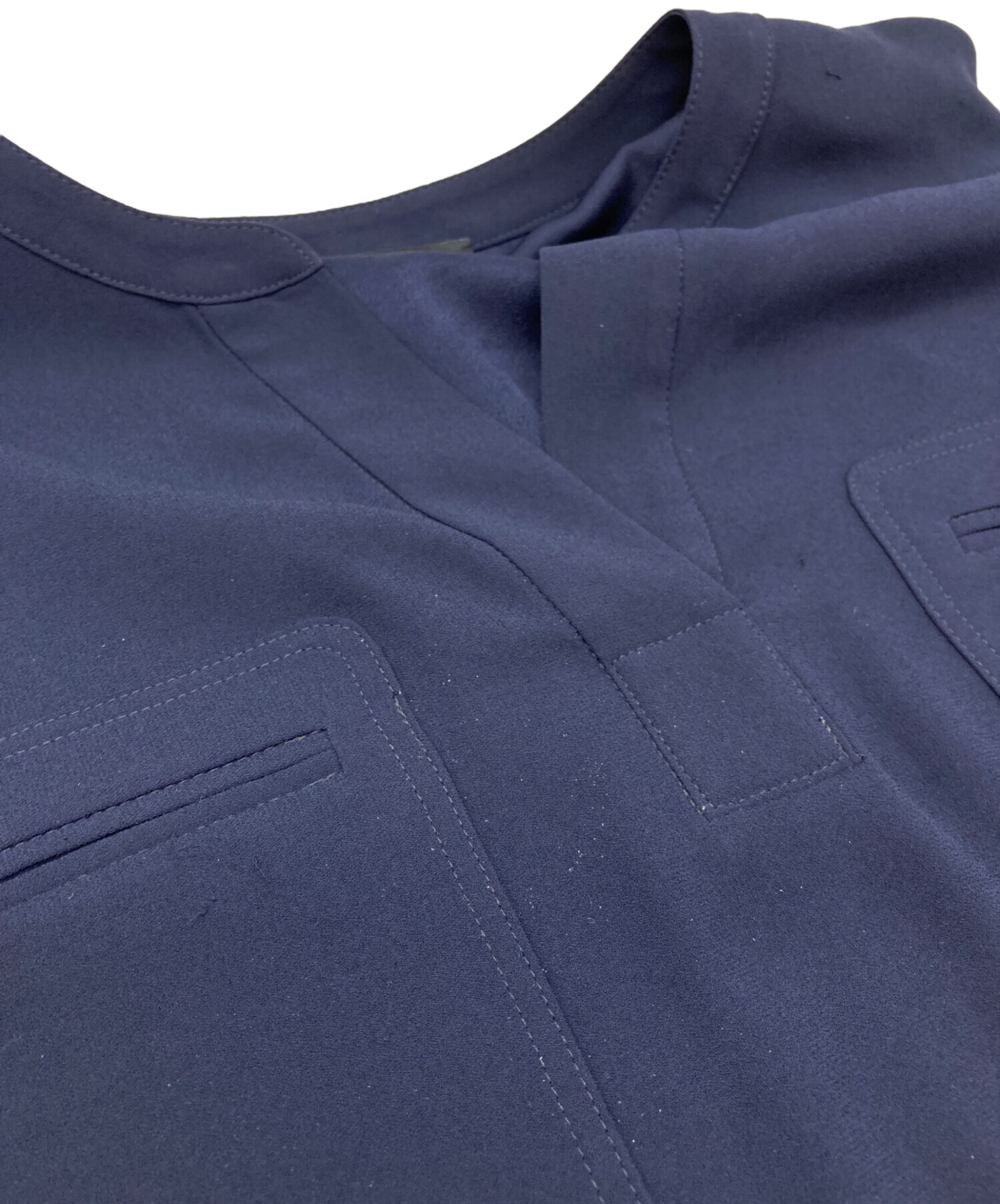 | アイテム名 | パウダークレーププルオーバー/ノースリーブブラウス/スキッパーブラウス/スリーブレス/スリット/MADE IN JAPAN/日本製/キャリア/ミセス/オフィスカジュアル/紺 |