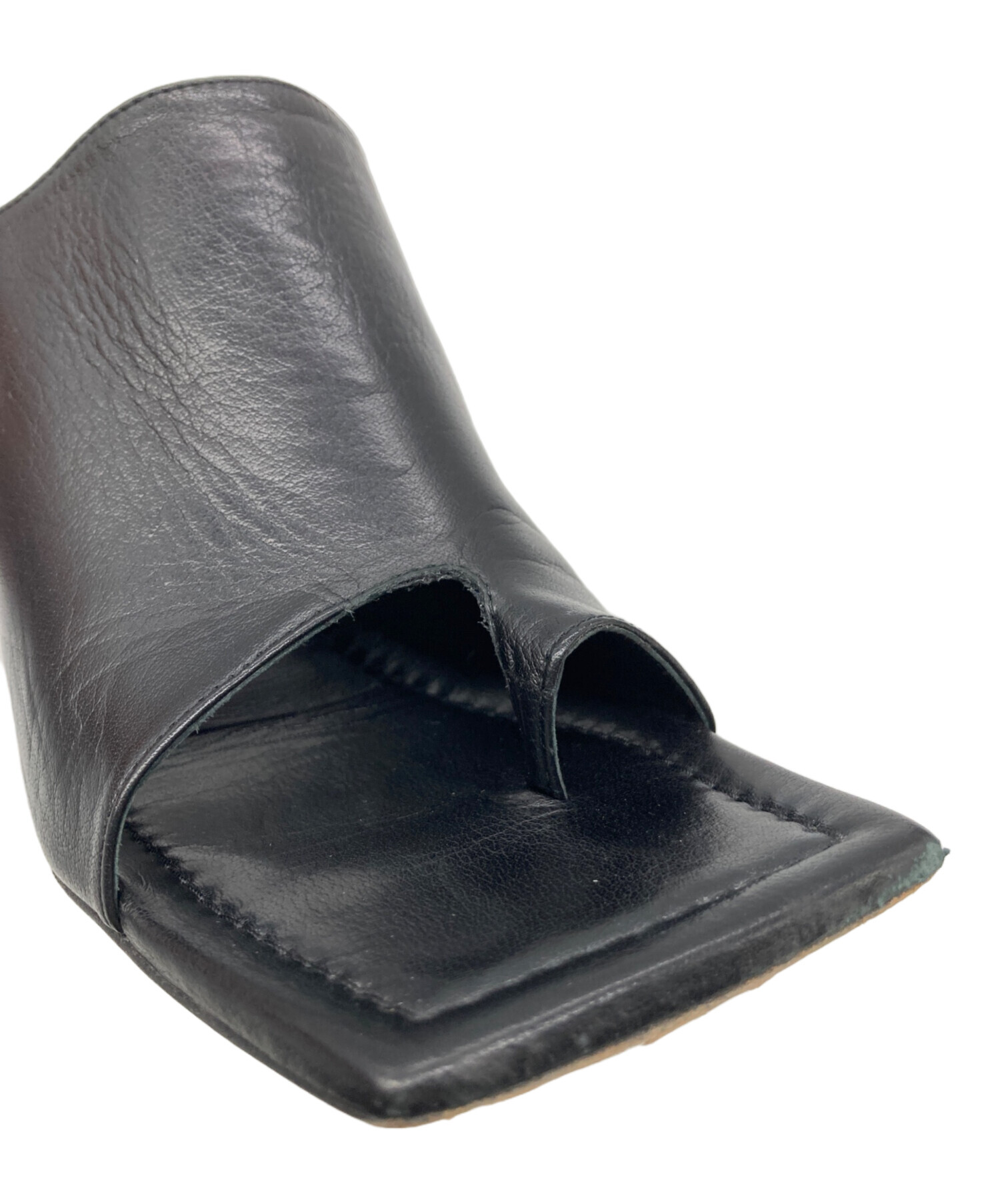 スクエアレザーミュールサンダル