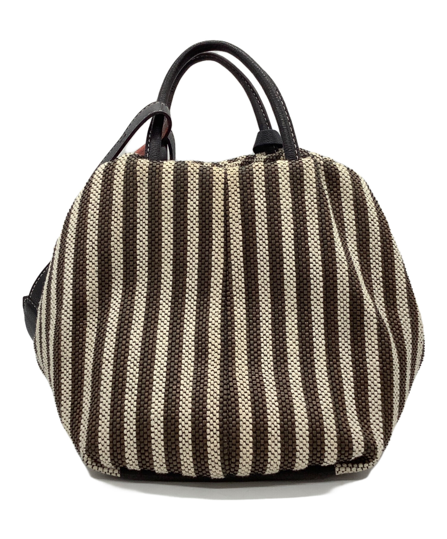 | 素材 | 表地:綿 41% ポリエチレン 38% ポリエステル 21% ハンドル・革パーツ:やぎ革 裏地:綿 100% |