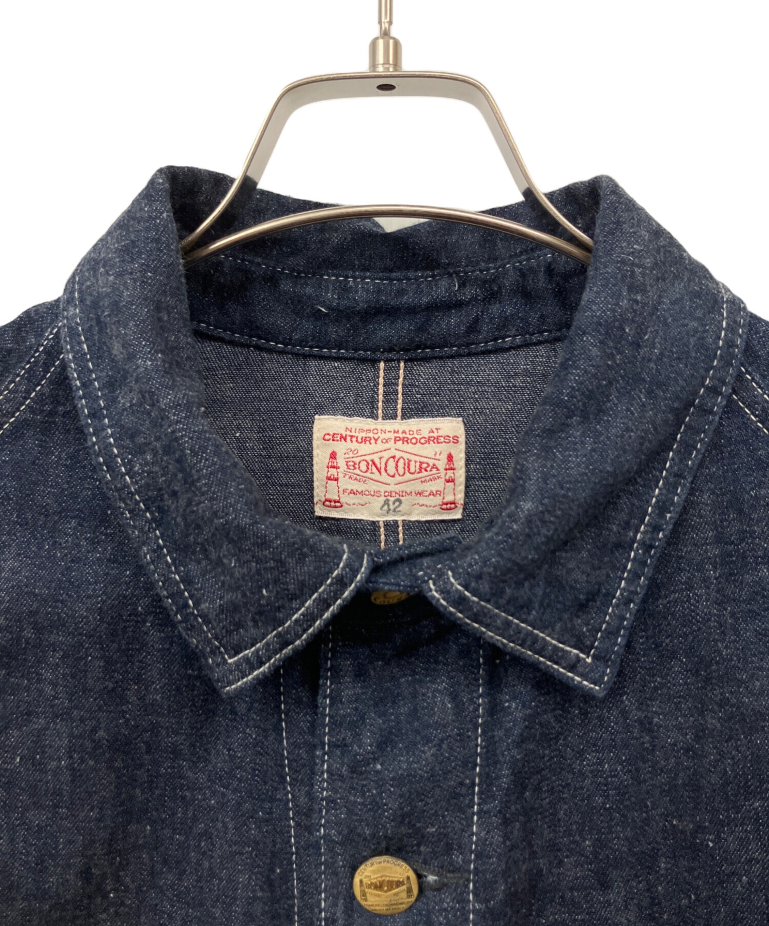 • BONCOURA(ボンクラ)BONCOURA (ボンクラ) デニムカバーオール インディゴ サイズ:42の古着・服飾アイテム ほつれ有