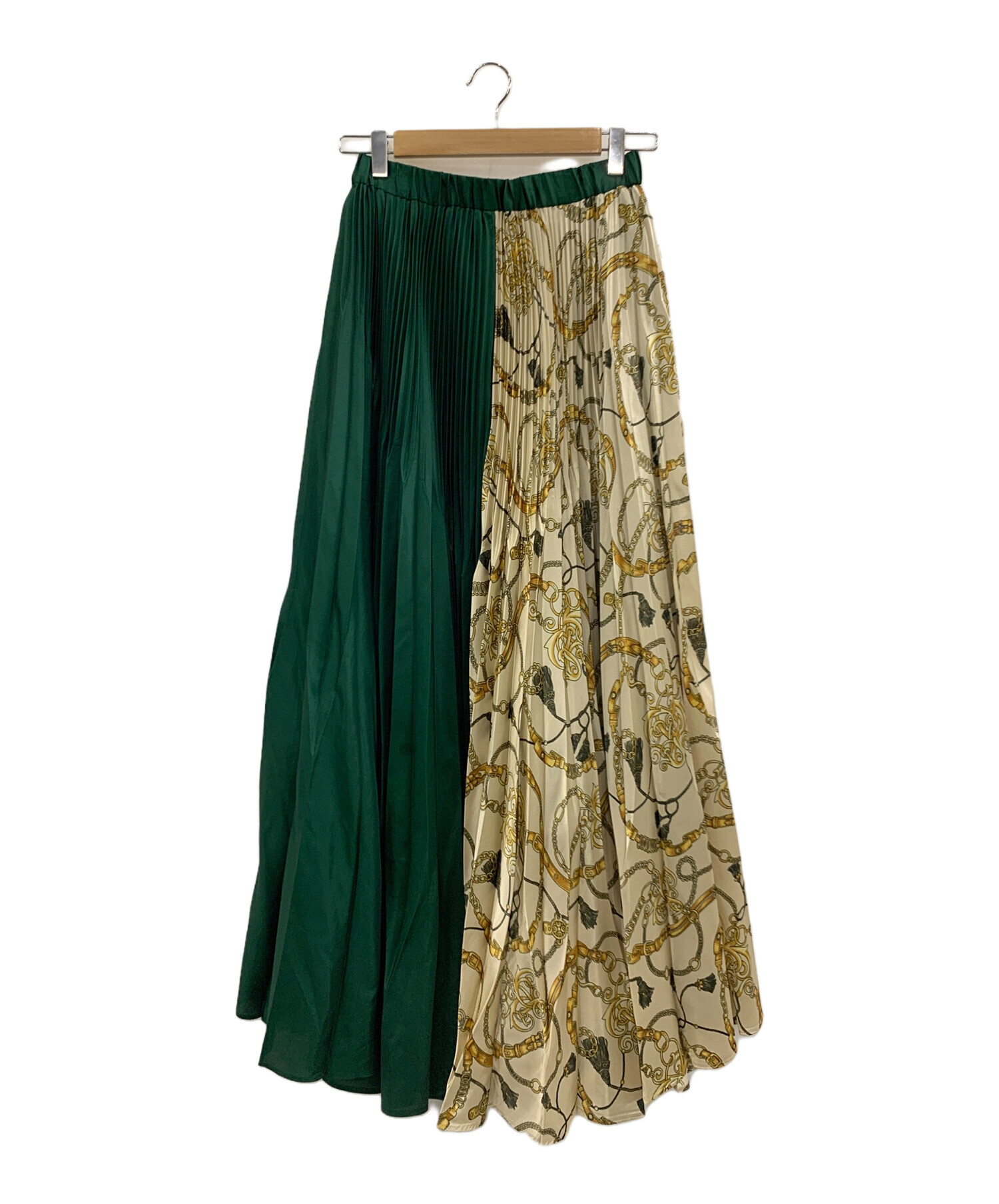 • UN3D.(アンスリード)UN3D. (アンスリード) オリガミプリーツパンツ グリーン サイズ:36の古着・服飾アイテム フロント右膝付近シミ