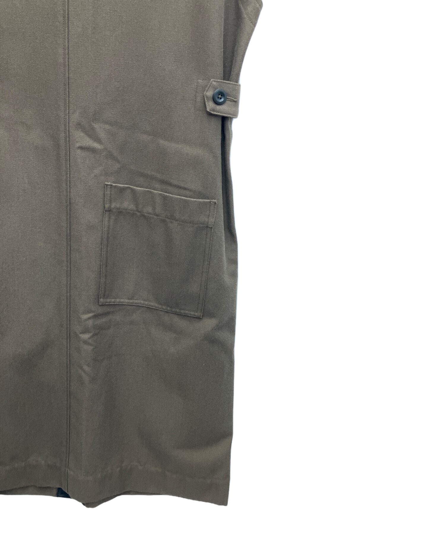 | スタッフコメント | 綿とウールを混紡したツイル生地で仕上げたVネックワンピースです。サイドボタンで一段階ウエストを絞り、程よくメリハリを付けてご着用いただけます。前開き仕様のためジレ風の着こなしも可能で、コーディネートの幅が広がるアイテムです。 |