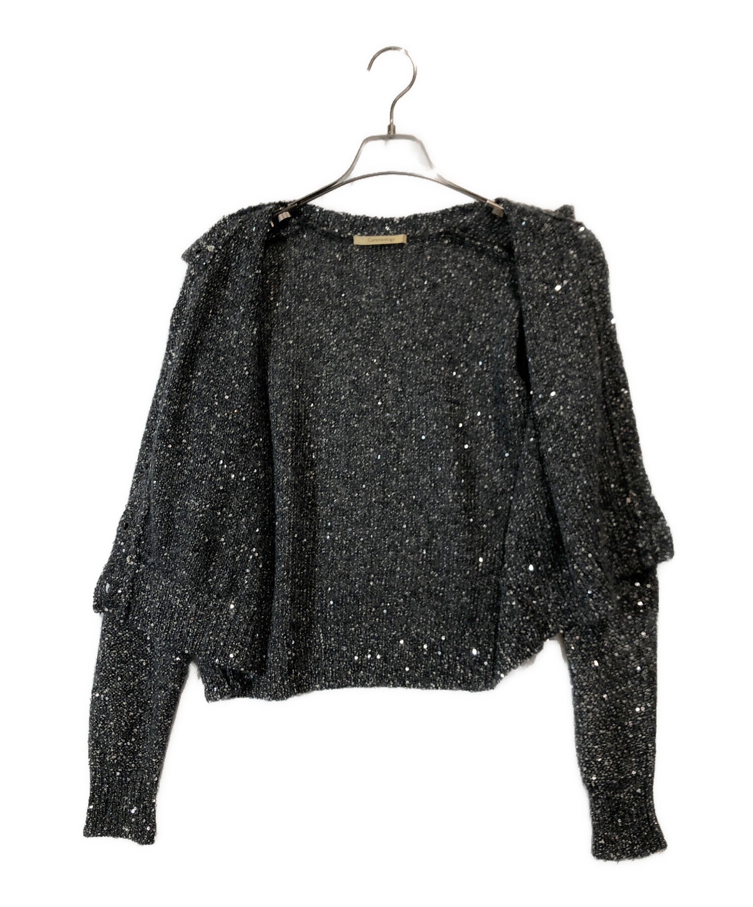 | スタッフコメント | Curensologyのスパングルショートカーディガンです。 。全体に施されたきらびやかなスパンコールと貝ボタンが特徴ある1着です。 |