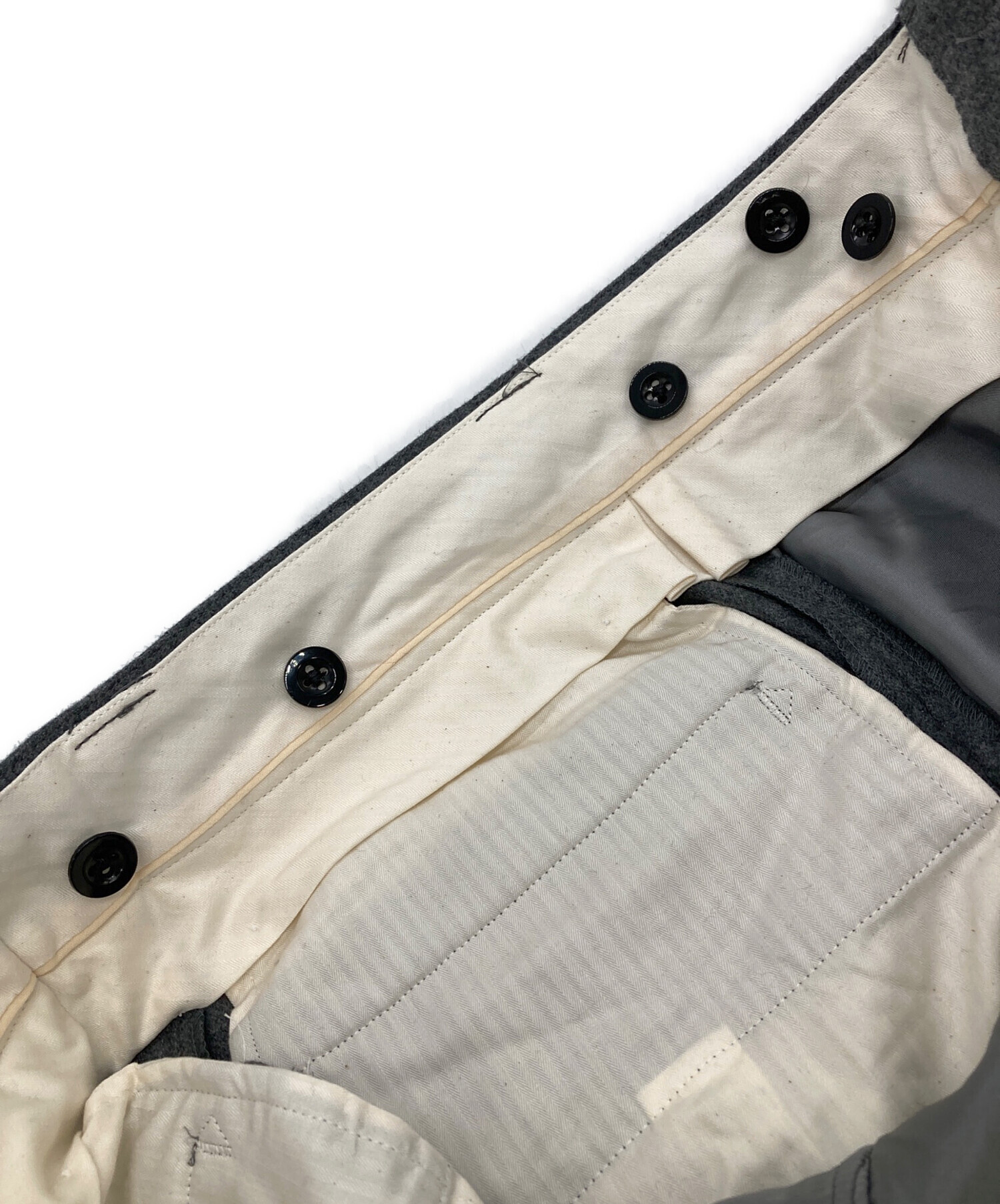 目立つシミや汚れ、におい等がある場合は商品画像や説明文にて極力表記させていただいておりますが、中古品という商品の特性上、全ての瑕疵や不備、洋服直し箇所を撮影・記載をすることは難しくなっております。また、ほとんどのアイテムは店頭と併売しておりますため、出品掲載時からコンディションが変動している場合もございます。あらかじめご了承くださいませ。