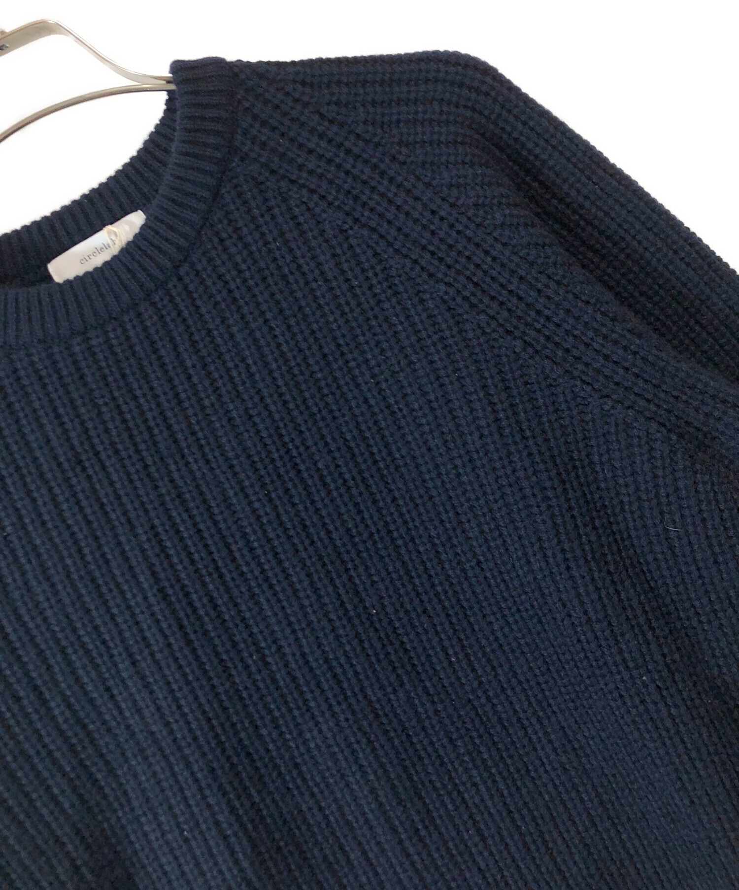 • circlelabo(サークルラボ)circlelabo (サークルラボ) ピュアカシミヤ ホールガーメント ラグラン 畦編みクルーネックセーター ネイビー サイズ:SIZE Lの古着・服飾アイテム 下状態