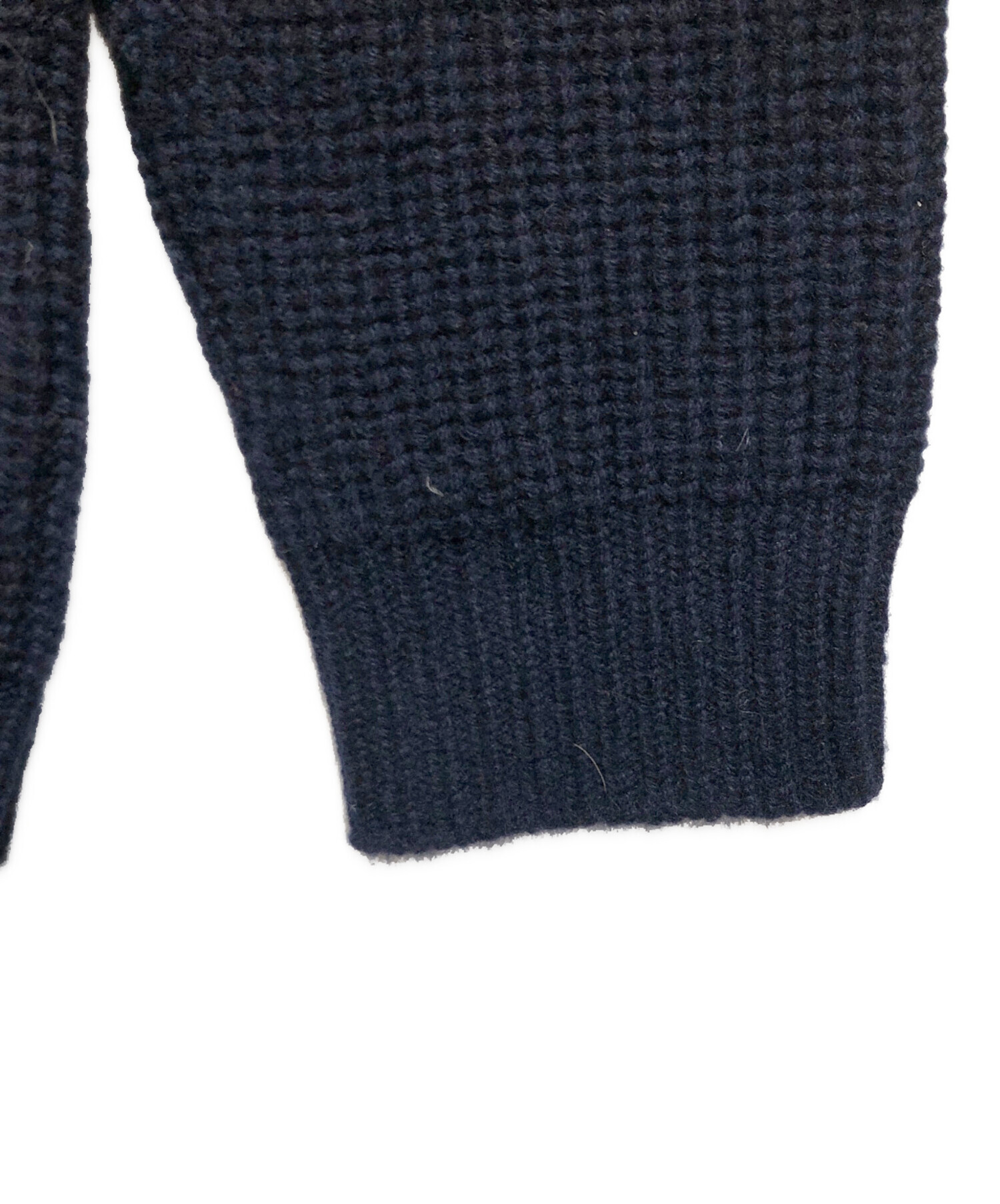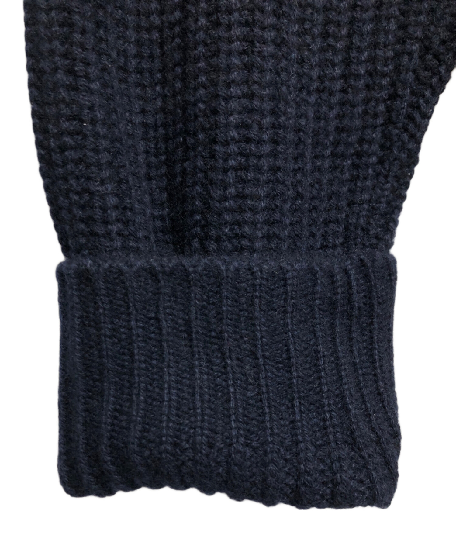 • circlelabo(サークルラボ)circlelabo (サークルラボ) ピュアカシミヤ ホールガーメント ラグラン 畦編みクルーネックセーター ネイビー サイズ:SIZE Lの古着・服飾アイテム 右袖状態(裏)