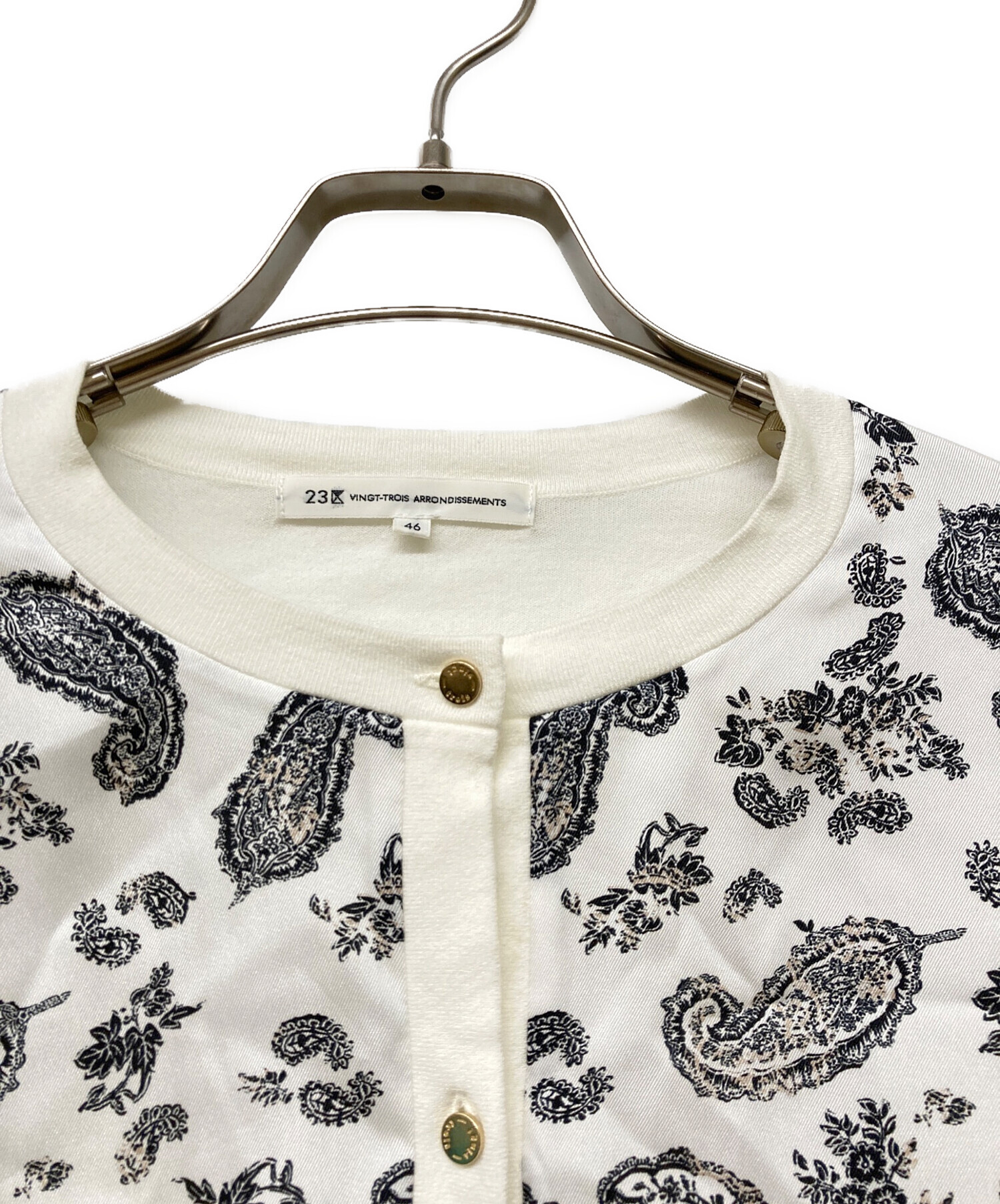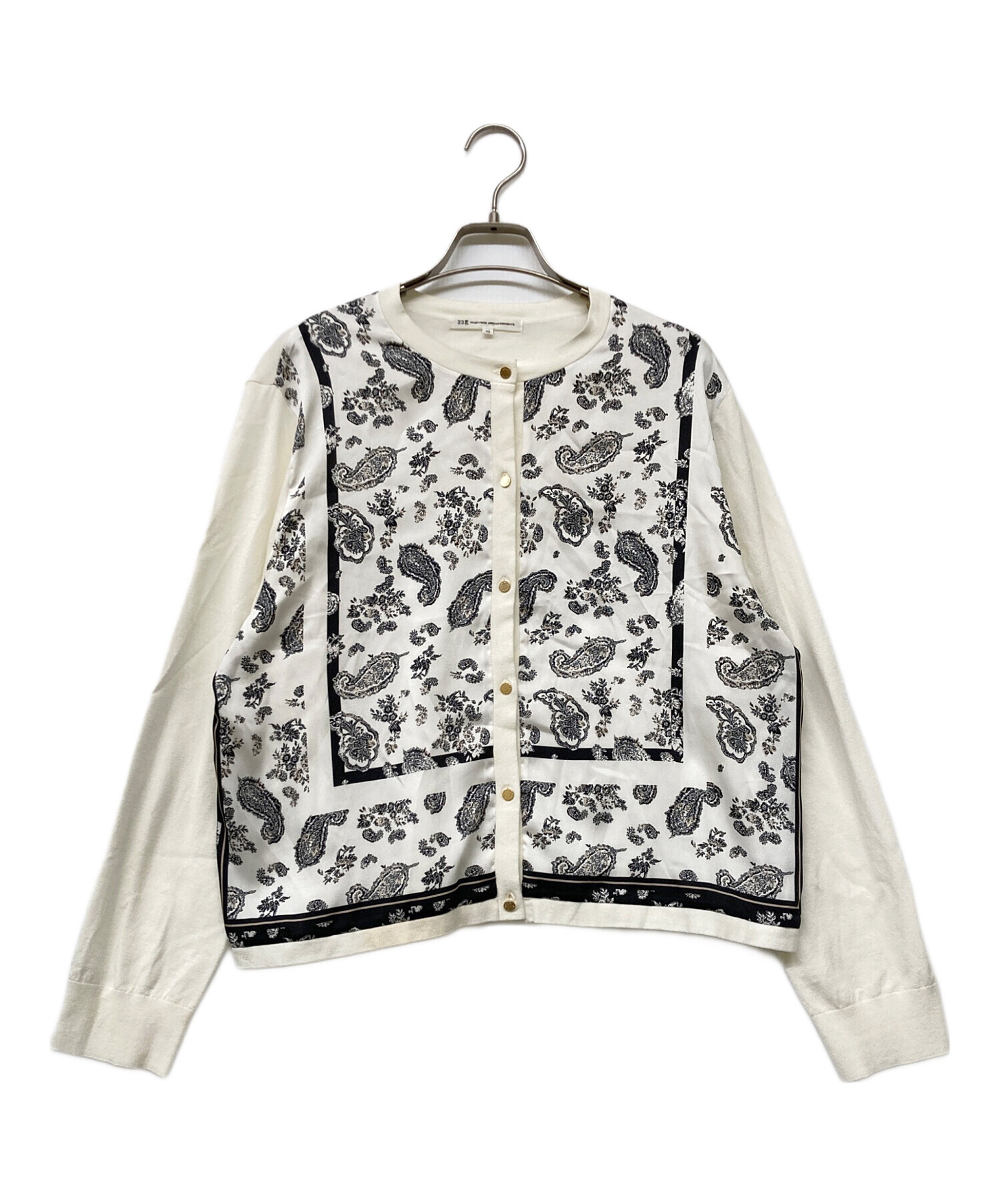 • 23区(ニジュウサンク)23区 (ニジュウサンク) スカーフパネルプリント カーディガン ホワイト サイズ:46の古着・服飾アイテム