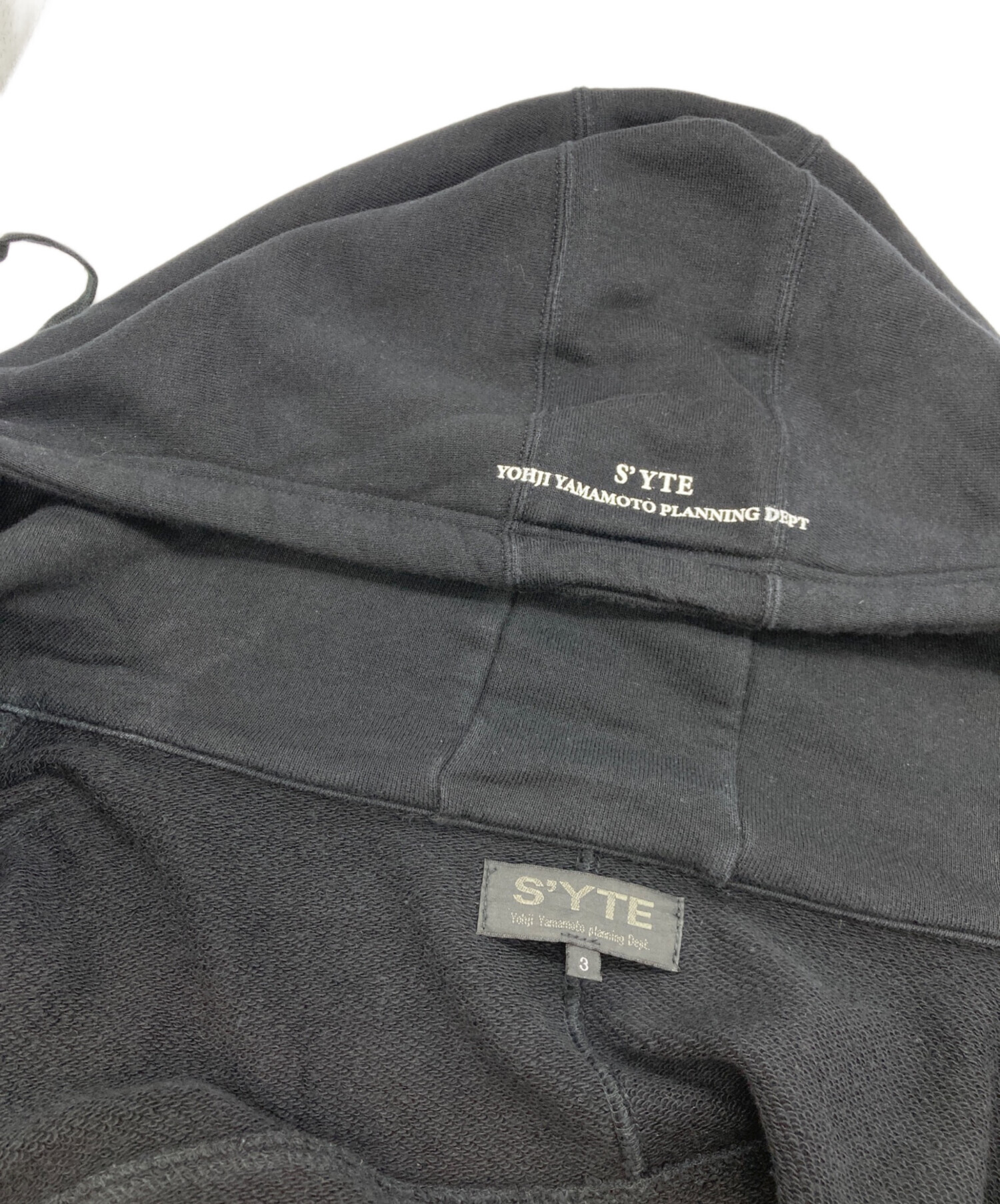 • s'yte(サイト)s'yte (サイト) ジップパーカー ブラック サイズ:3の古着・服飾アイテム フード内・襟元ヨゴレ有