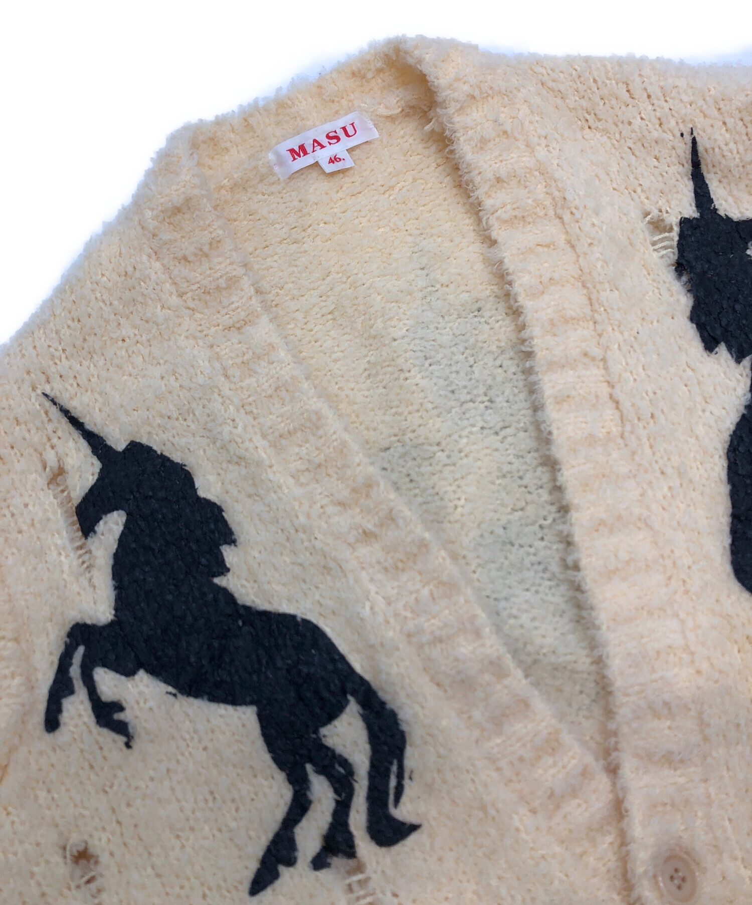 • masu(エムエーエスユー)masu (エムエーエスユー) UNICORN GRUNGE CARDIGAN/デストロイニットカーディガン/クラッシュ加工 アイボリー×ブラック サイズ:46の古着・服飾アイテム