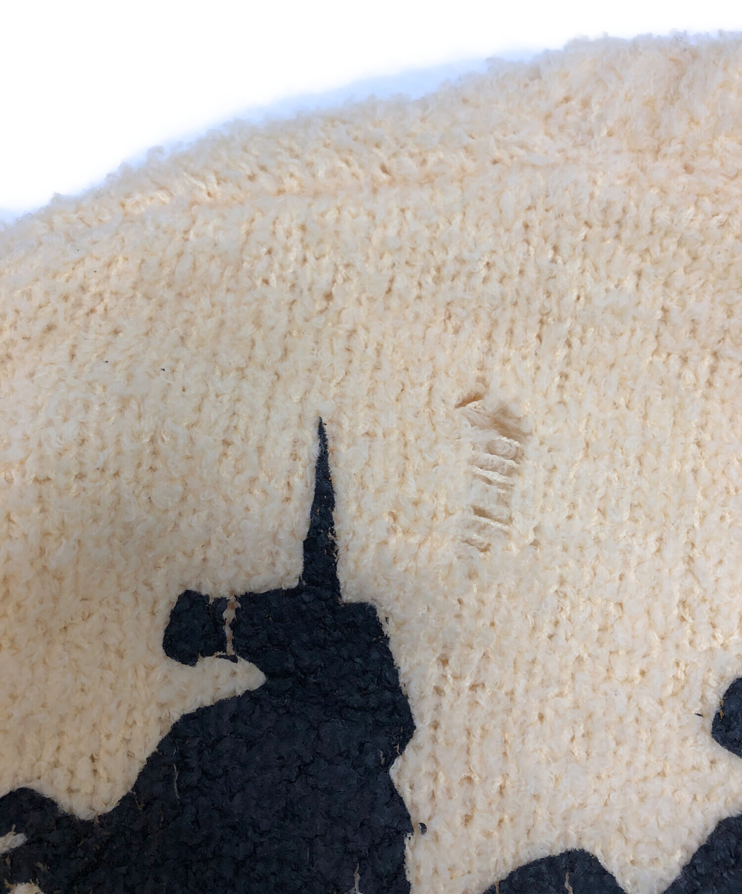 • masu(エムエーエスユー)masu (エムエーエスユー) UNICORN GRUNGE CARDIGAN/デストロイニットカーディガン/クラッシュ加工 アイボリー×ブラック サイズ:46の古着・服飾アイテム このようなダメージ加工各所に有