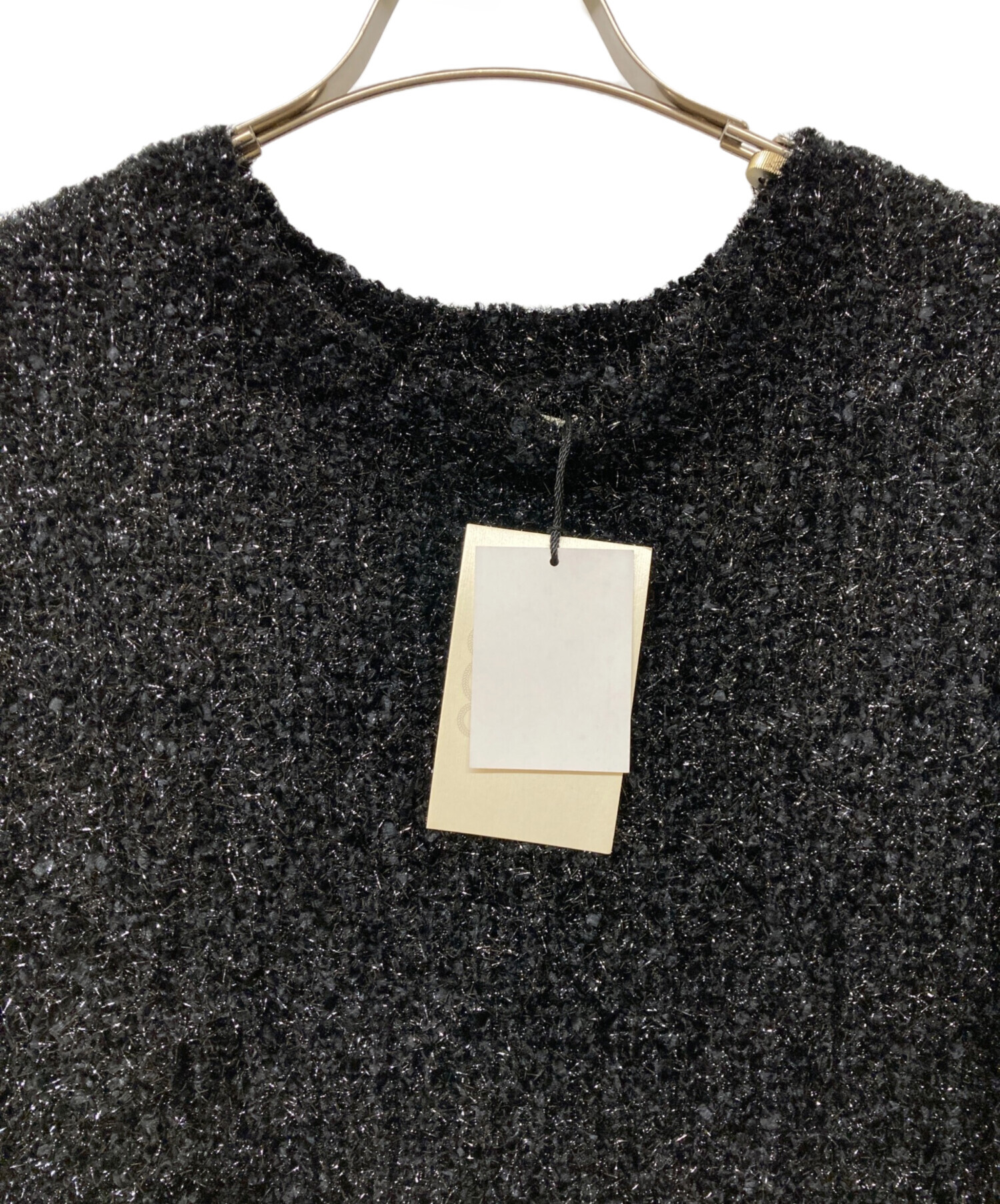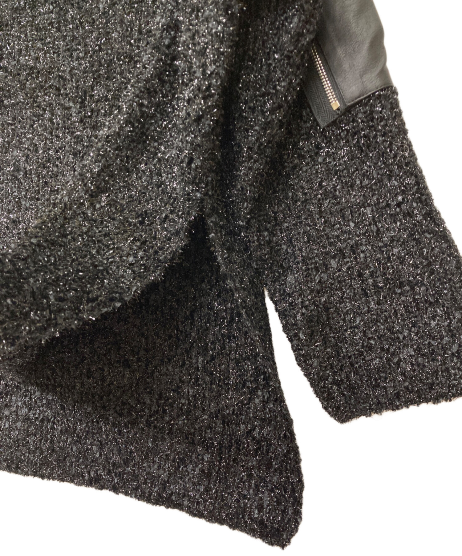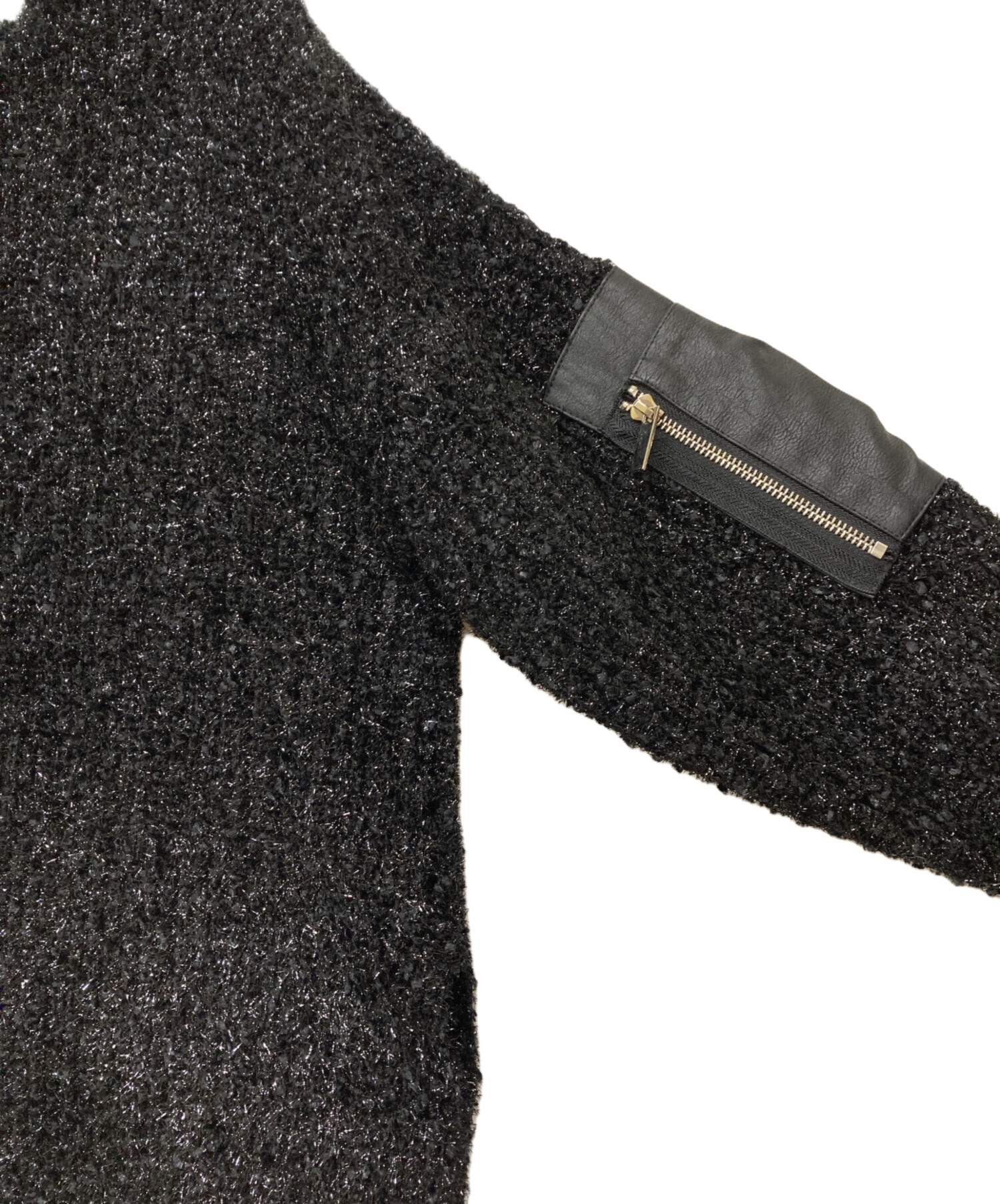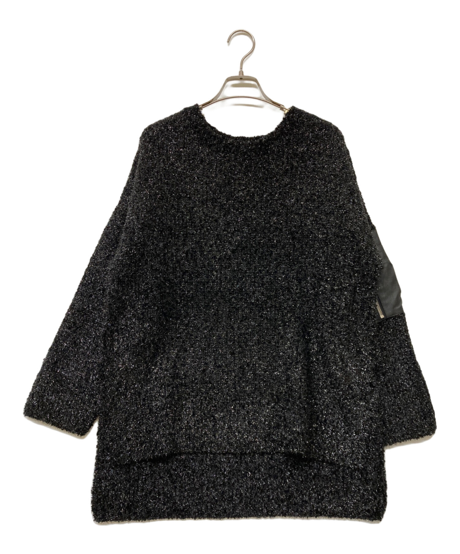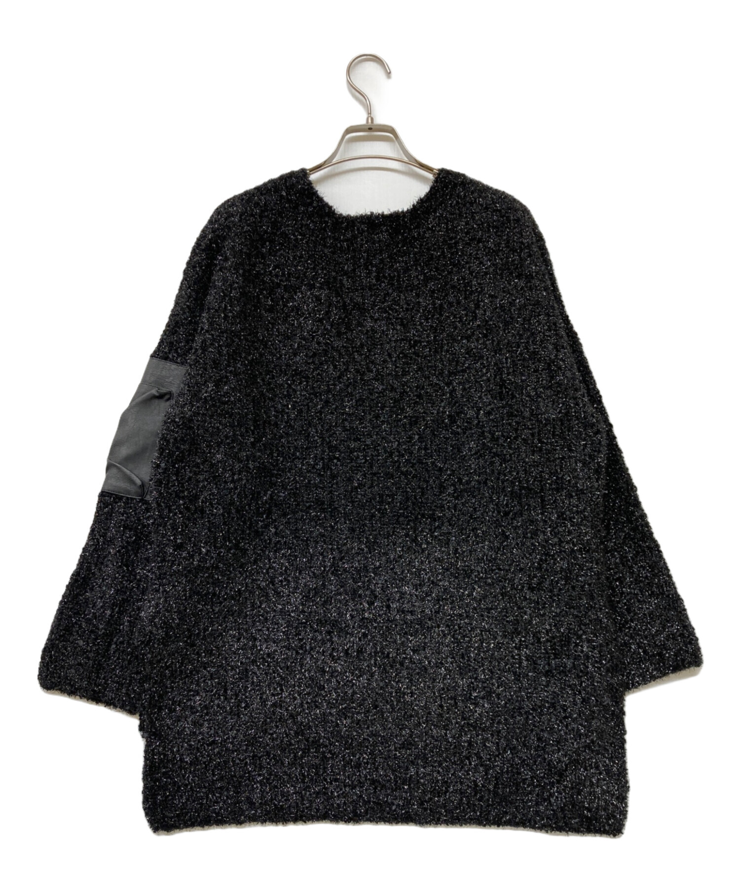 アイテム名 Lame Yarn Leather Pocket PO/ラメヤーンレザーポケットプルオーバー/ニット/黒