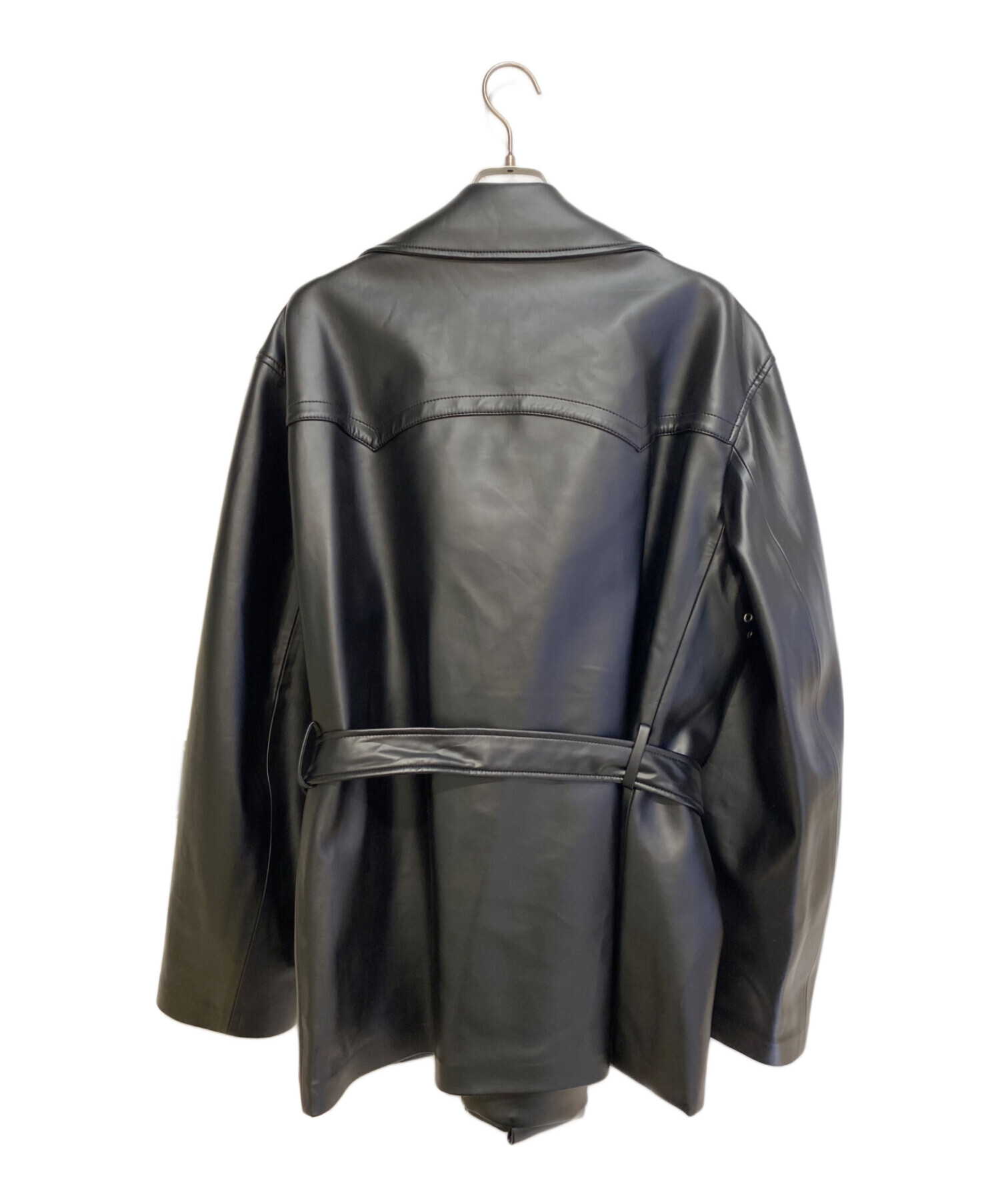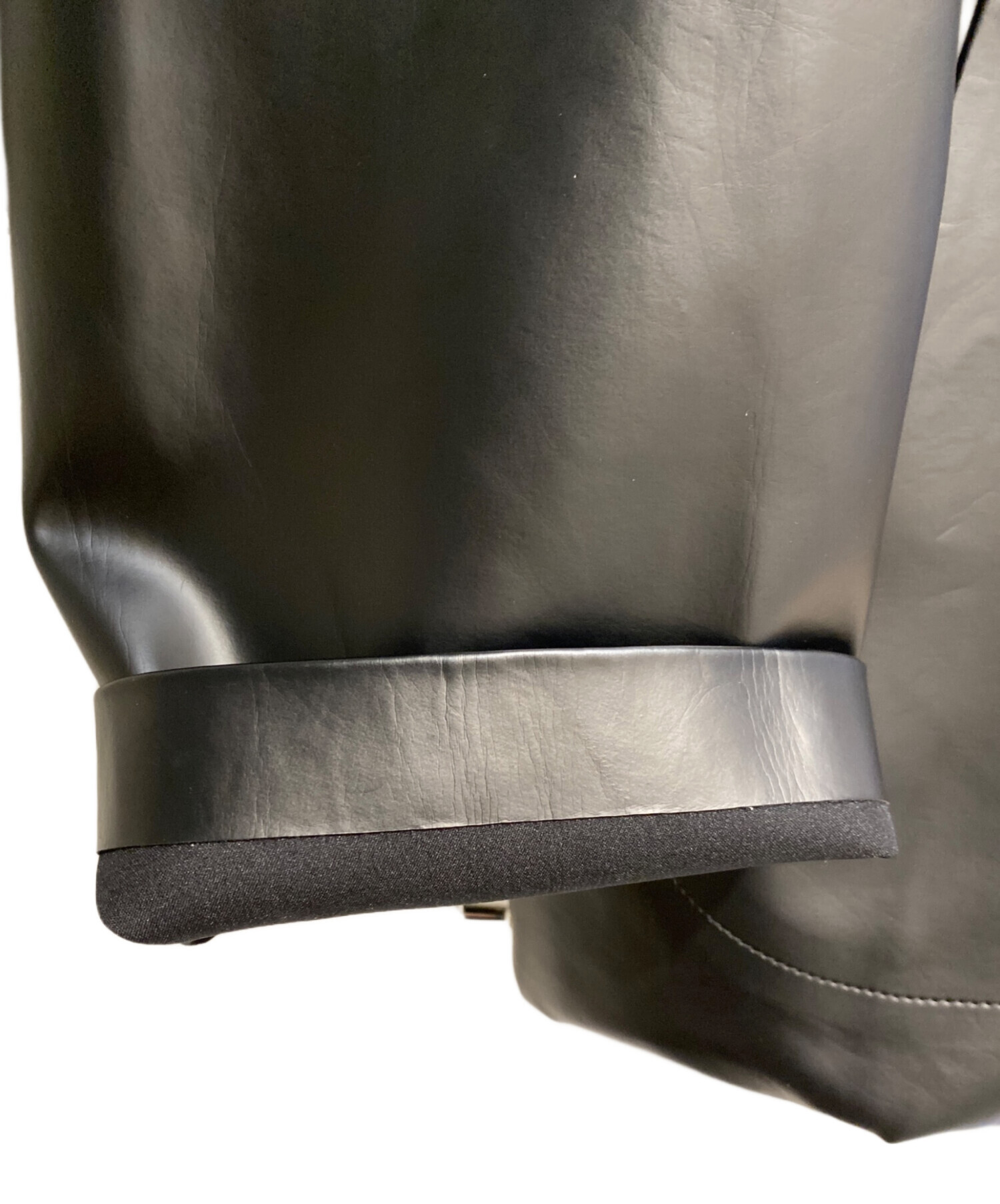 | スタッフコメント | デザイン性の高いフェイクレザー素材のダブルジャケットです。フロントボタン部分の内側にはもう一枚の生地がデザインされており、インナーのダブルジップにて開閉が可能です。またフロント生地は折り返しの2重構造になっており、軽量かつややボリューム感のある生地感が特徴です。 |