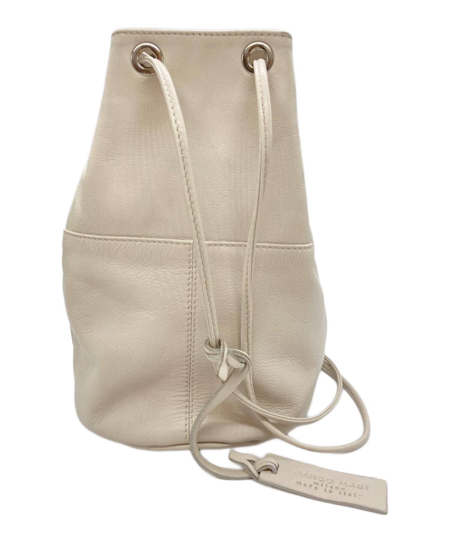 • MARCO MASI(マルコマージ)MARCO MASI (マルコマージ) レザー巾着バッグ アイボリーの古着・服飾アイテム 開口部スレ・ハガレ・ヨゴレ各所有