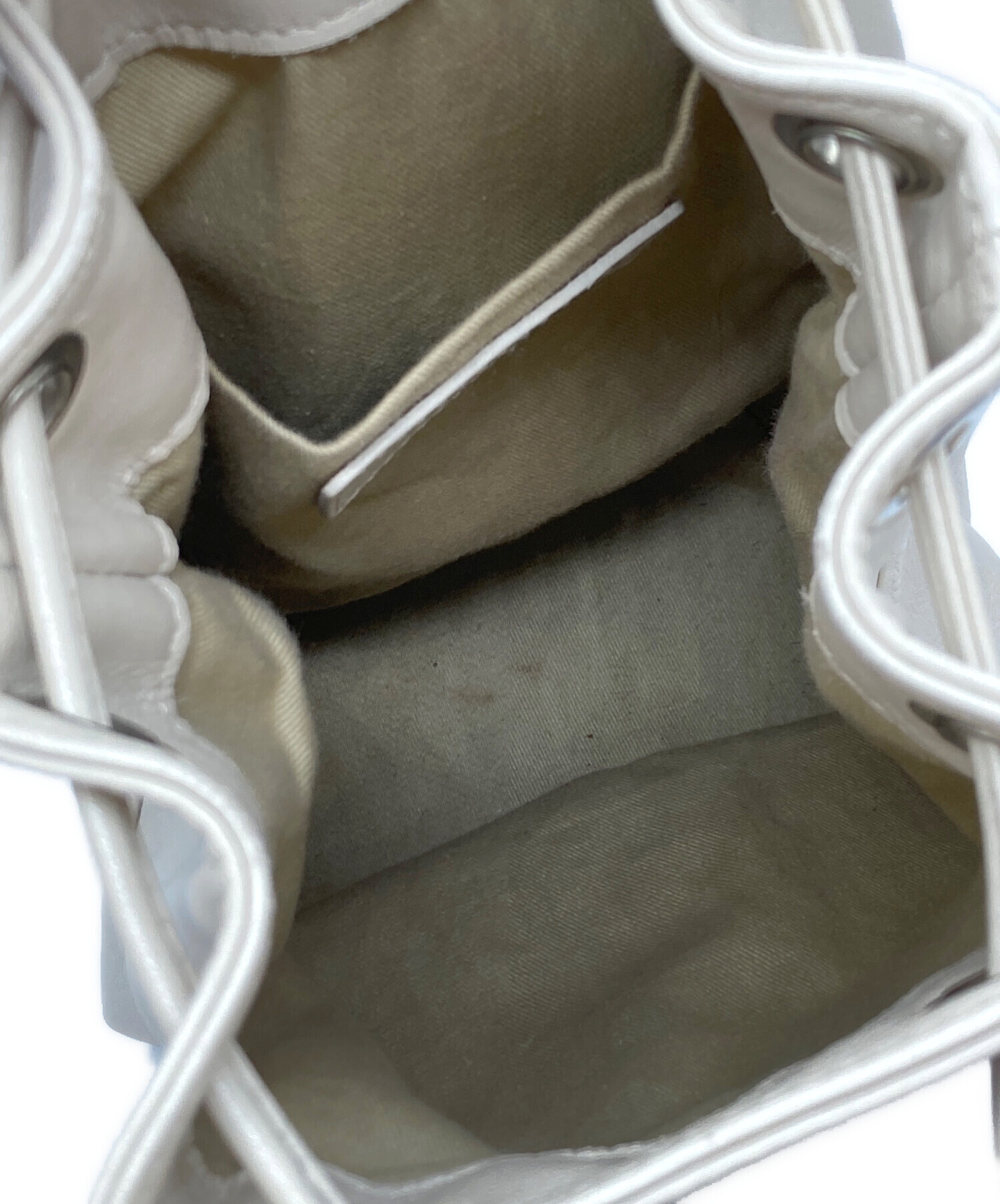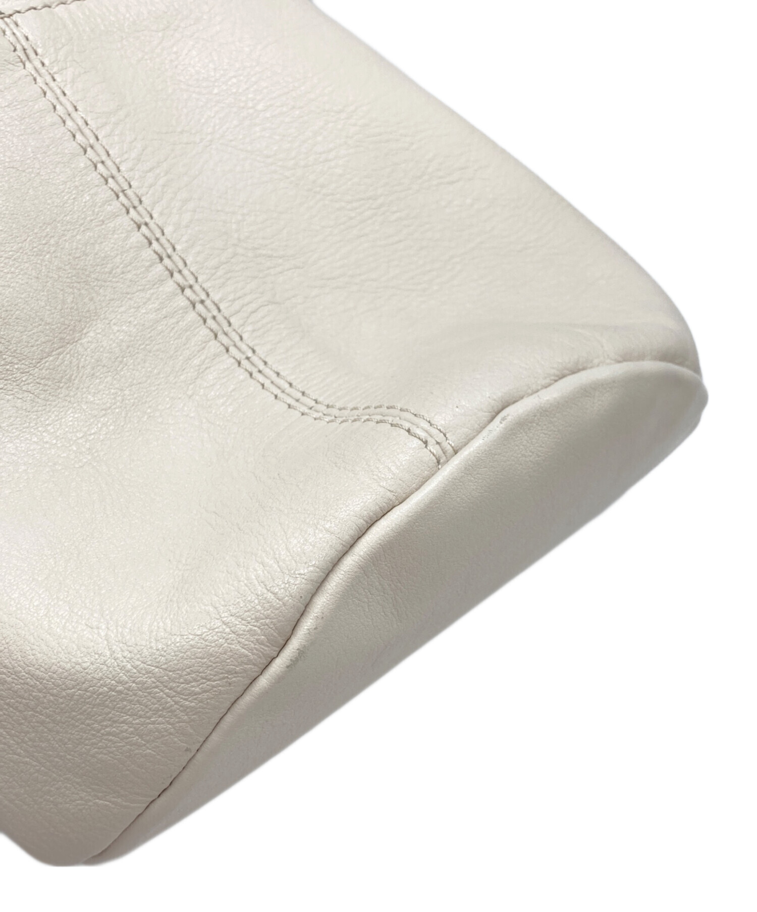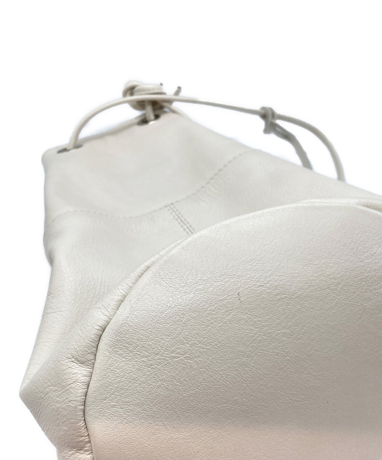 • MARCO MASI(マルコマージ)MARCO MASI (マルコマージ) レザー巾着バッグ アイボリーの古着・服飾アイテム 開口部写真のようなハガレ所々有