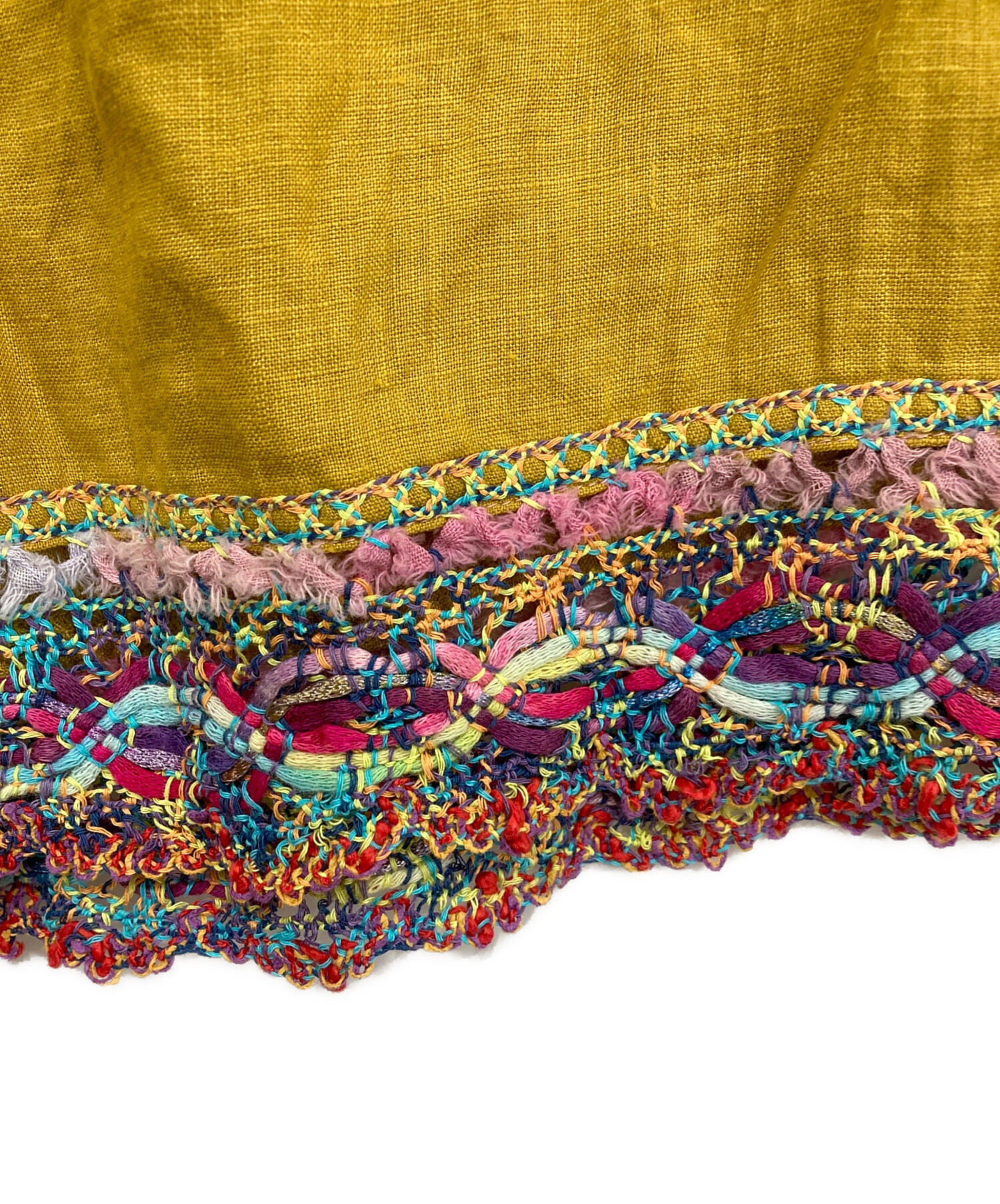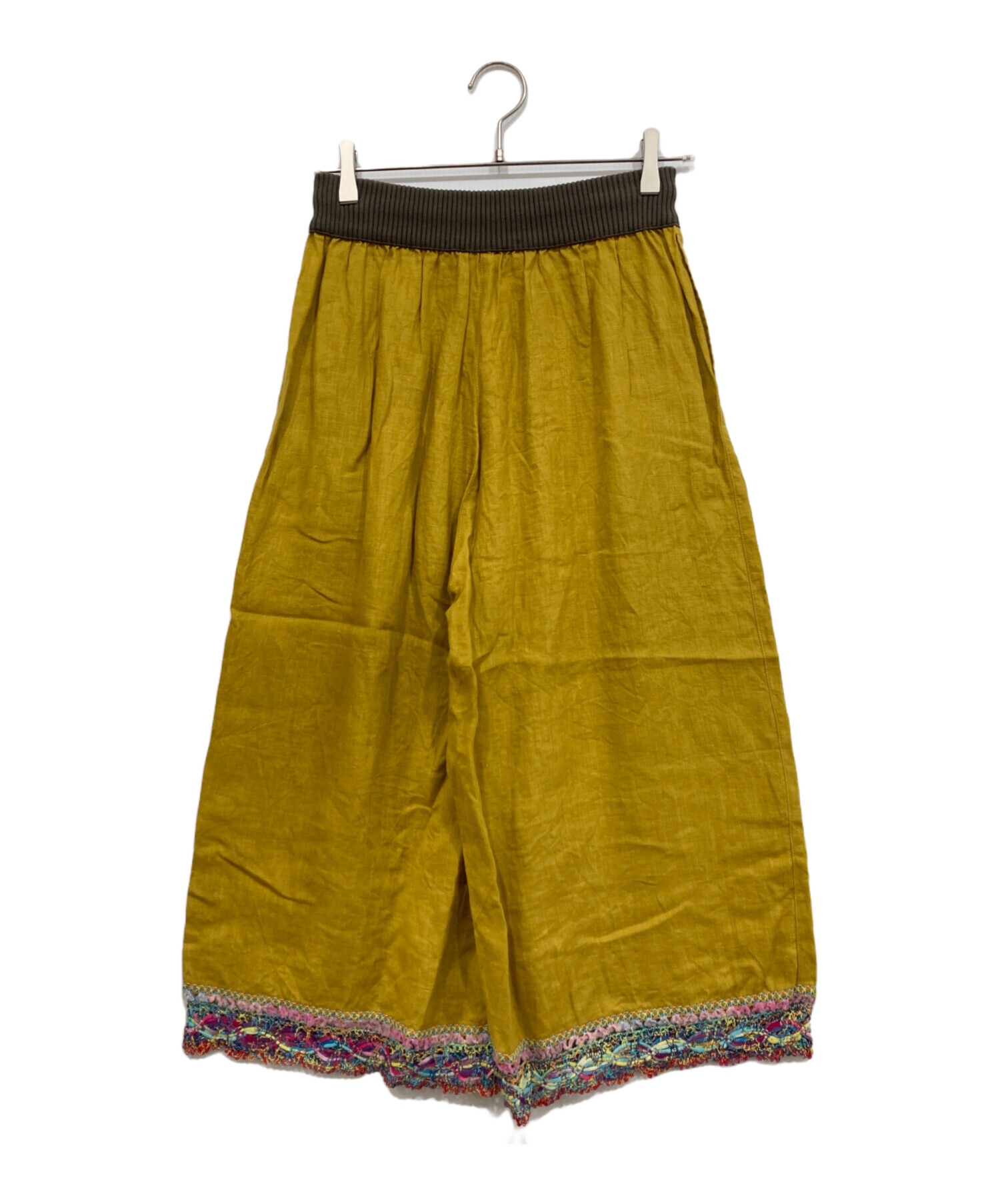 | 素材 | 本体: 麻 100% 裾部分: 分類外繊維(和紙) 47% コットン 34% アクリル 12% ナイロン 5% ポリエステル 2% ウエスト: コットン 74% ナイロン 16% ポリエステル 8% ポリウレタン 2% |