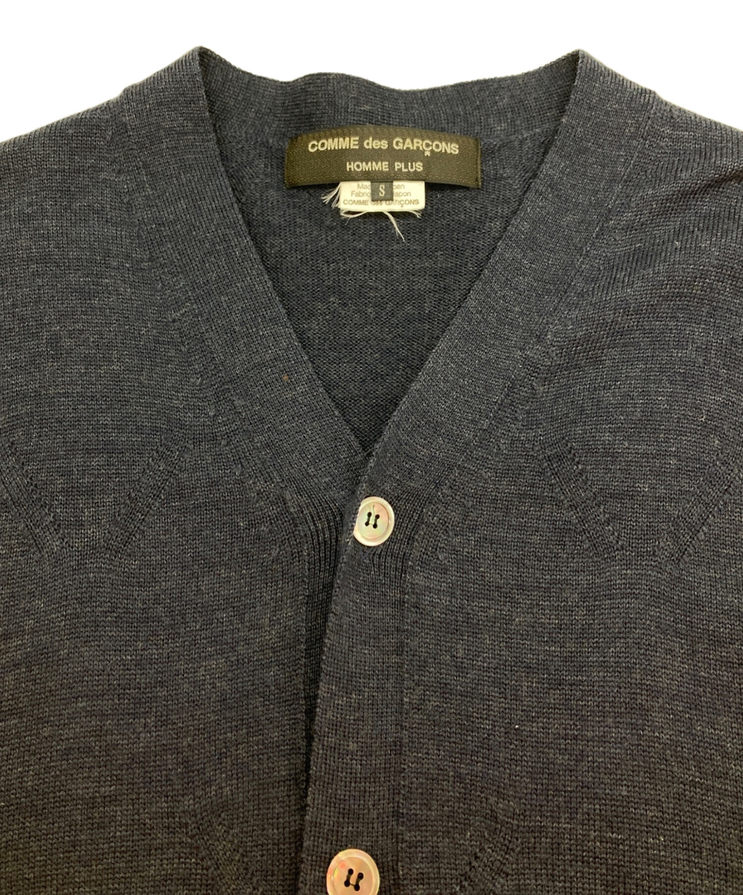 • COMME des GARCONS HOMME PLUS(コムデギャルソンオムプリュス)COMME des GARCONS HOMME PLUS (コムデギャルソンオムプリュス) ウールロングカーディガン ネイビー サイズ:Sの古着・服飾アイテム 各所ヨゴレ有