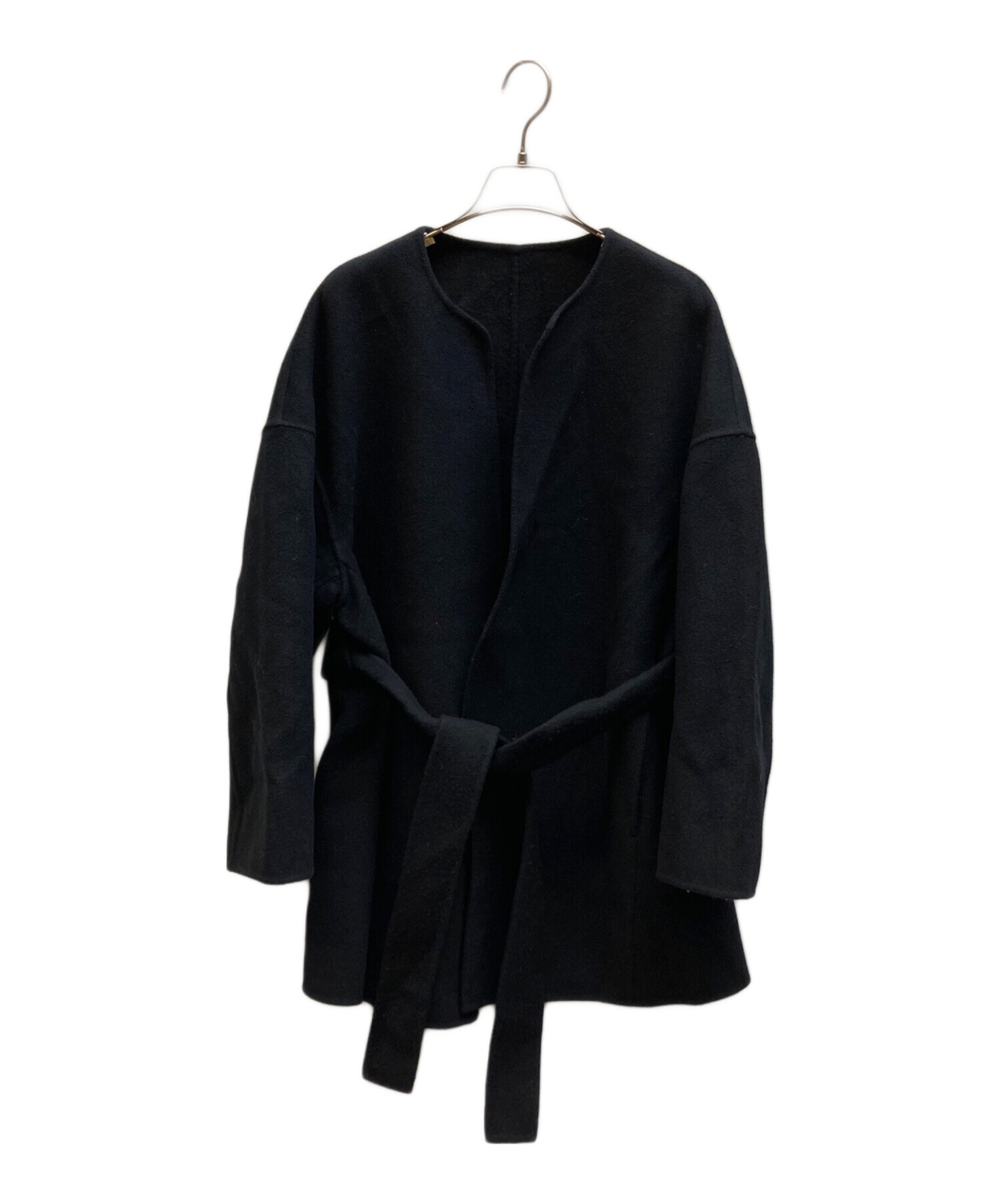 • Loulou Willoughby(ルルウィルビー)Loulou Willoughby (ルルウィルビー) シャルムビーバーリバーミドルコート ブラック サイズ:2の古着・服飾アイテム ベルト 毛玉有