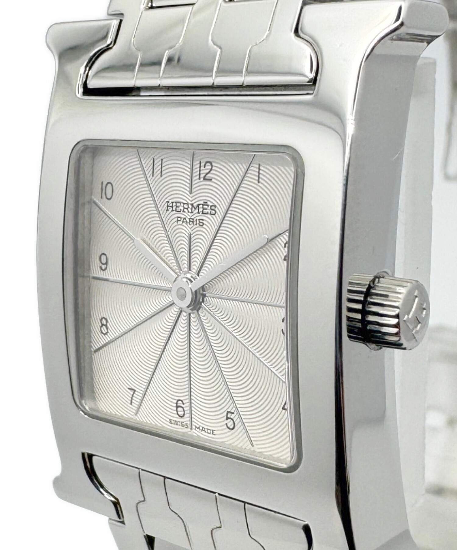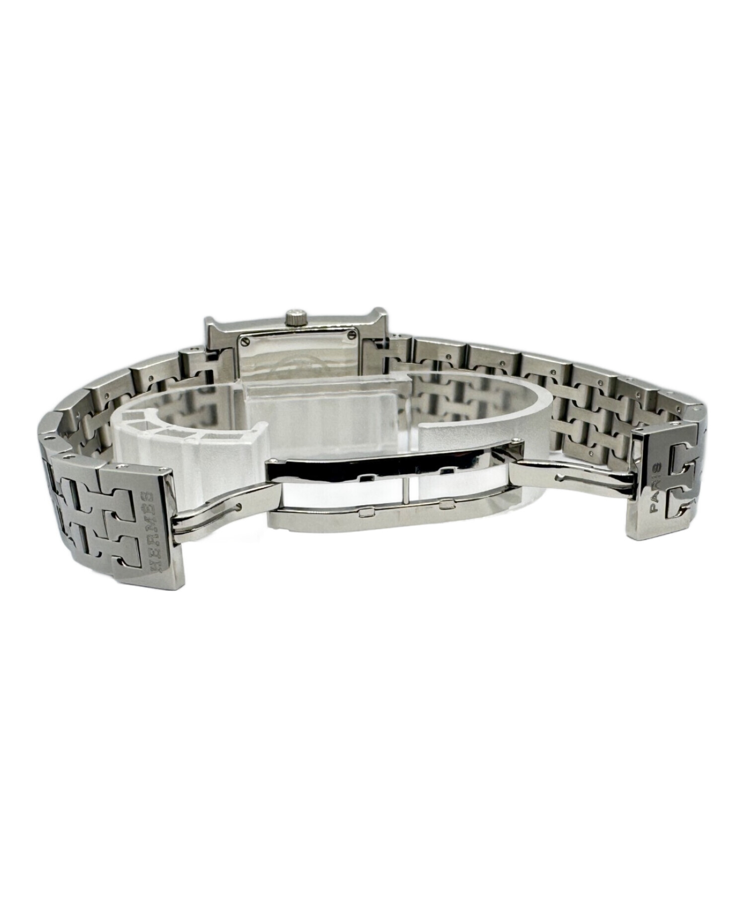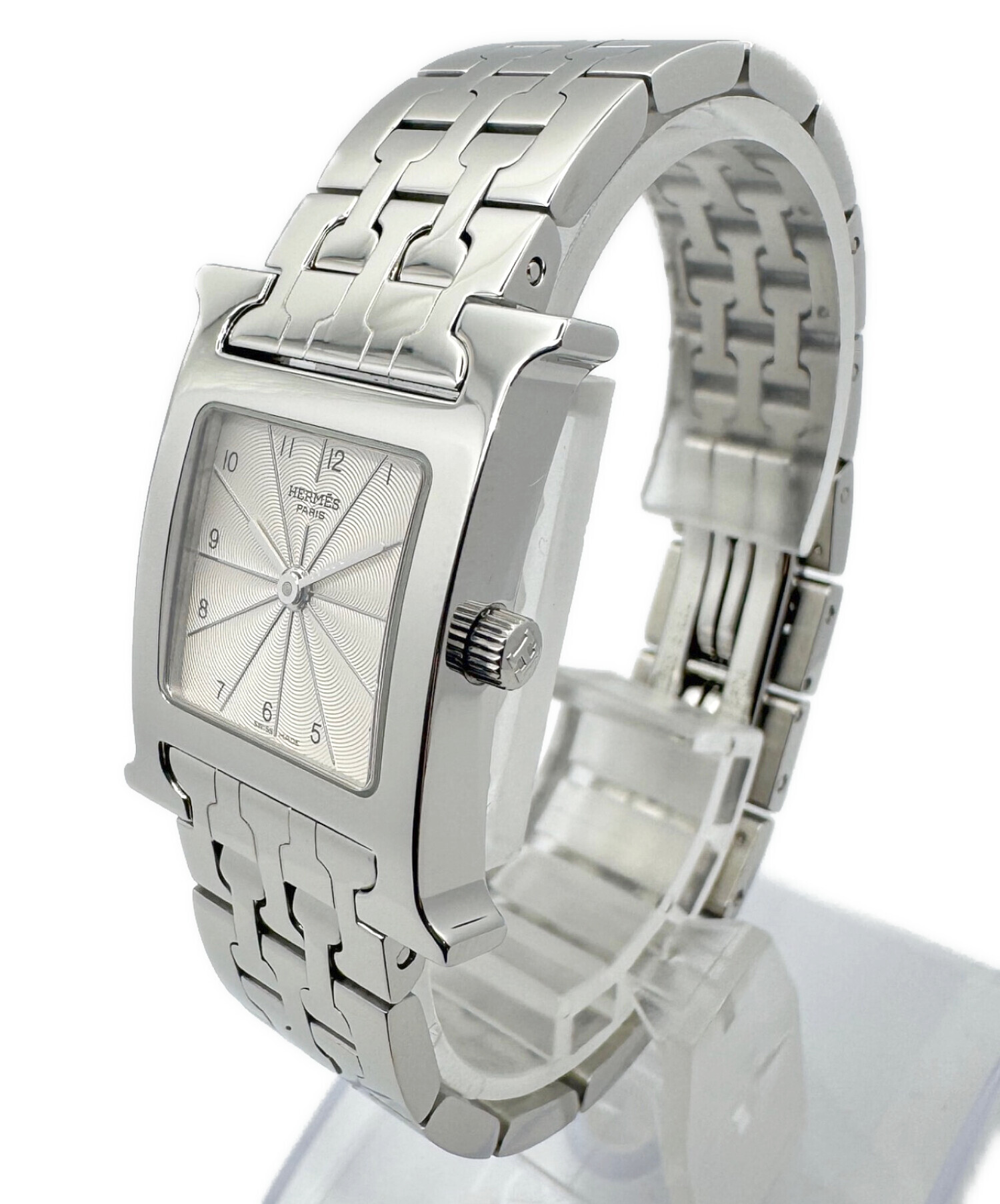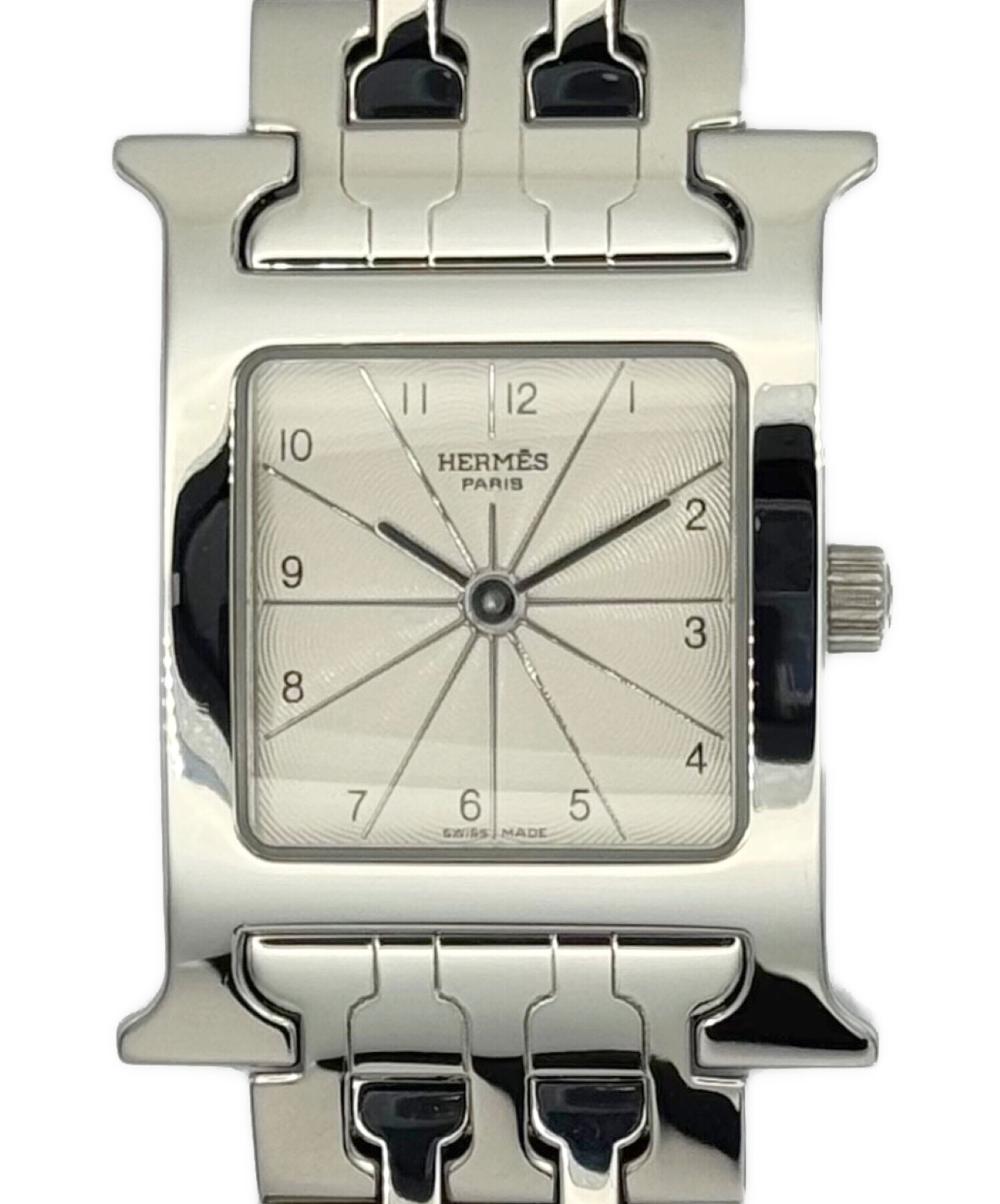 | スタッフコメント | エルメスのアイコンウォッチとして名高いHウォッチでございます。ケースはブランド頭文字であるHとなっており、非常にアイコニックなデザインとなっております。シルバー×SSのカラーリングはアクセサリーのようにお使いいただけます。 |