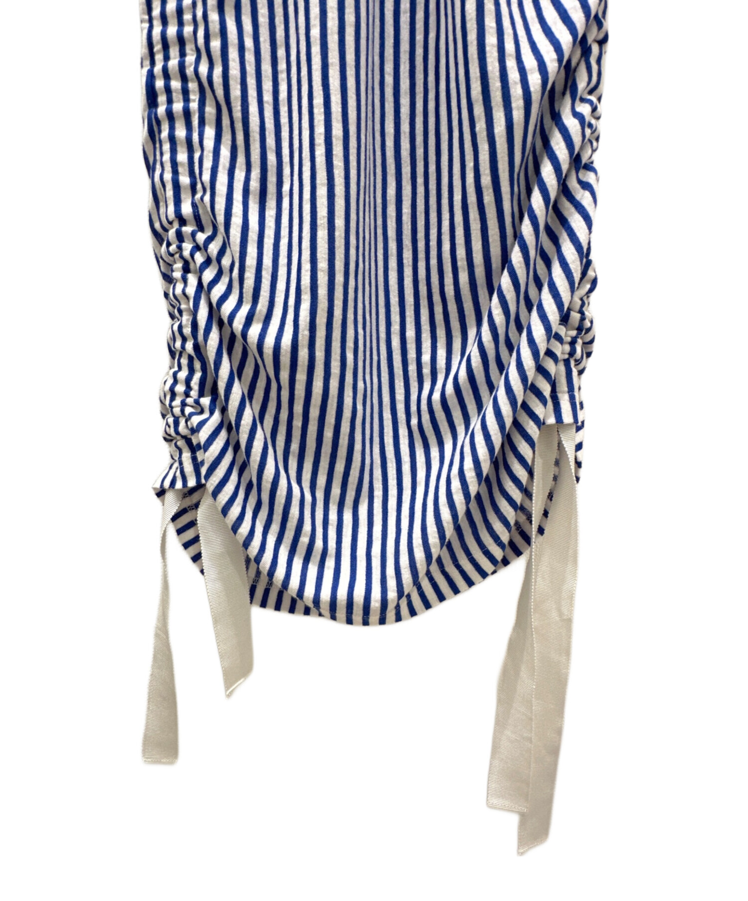 | スタッフコメント | シャネルのココマークストライプワンピースです。すっきりとしたラインとサイドに調整可能な絞り紐もあり、軽やかに着用いただけます。胸元のブルーのココマークが清潔感や上品さをアップさせます。一枚でも重ね着でもアレンジ可能です。 |