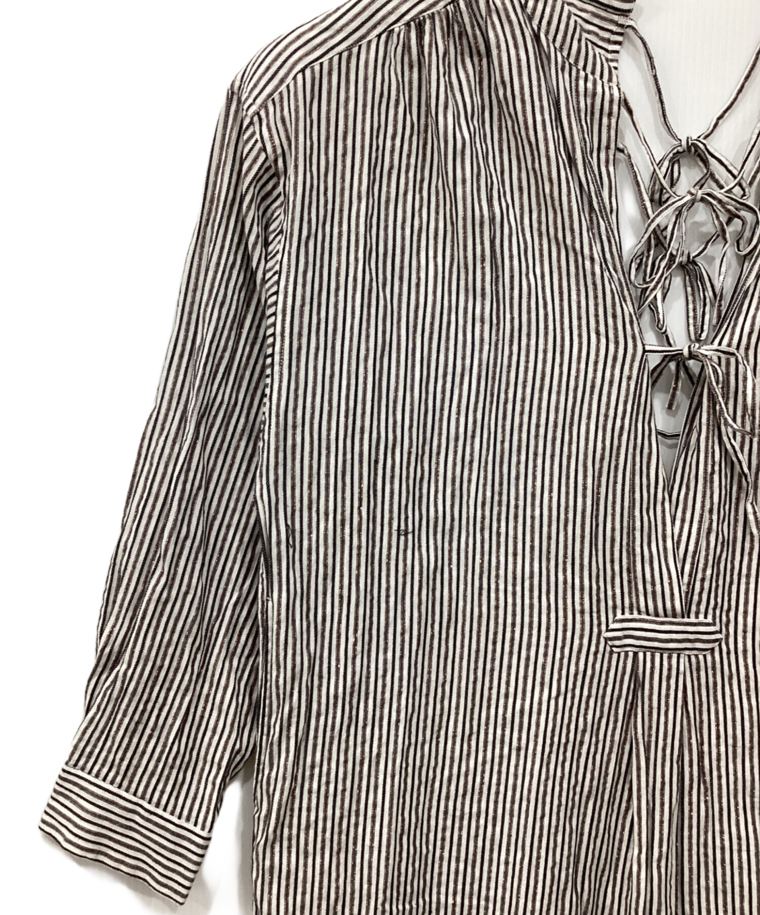 | アイテム名 | COTTON STRIPE RIBBON SHIRTS(コットン ストライプ リボン シャツ) |