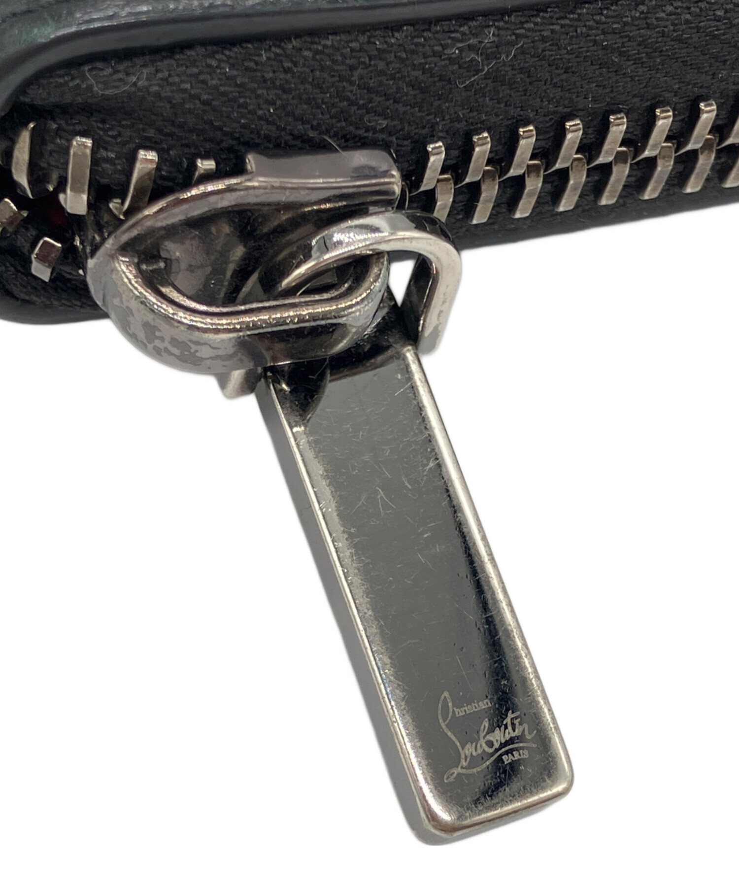 • Christian Louboutin(クリスチャン・ルブタン)Christian Louboutin (クリスチャン・ルブタン) PANETTONE SPIKE ラウンドファスナーウォレット 長財布 ブラックの古着・服飾アイテム キズ有