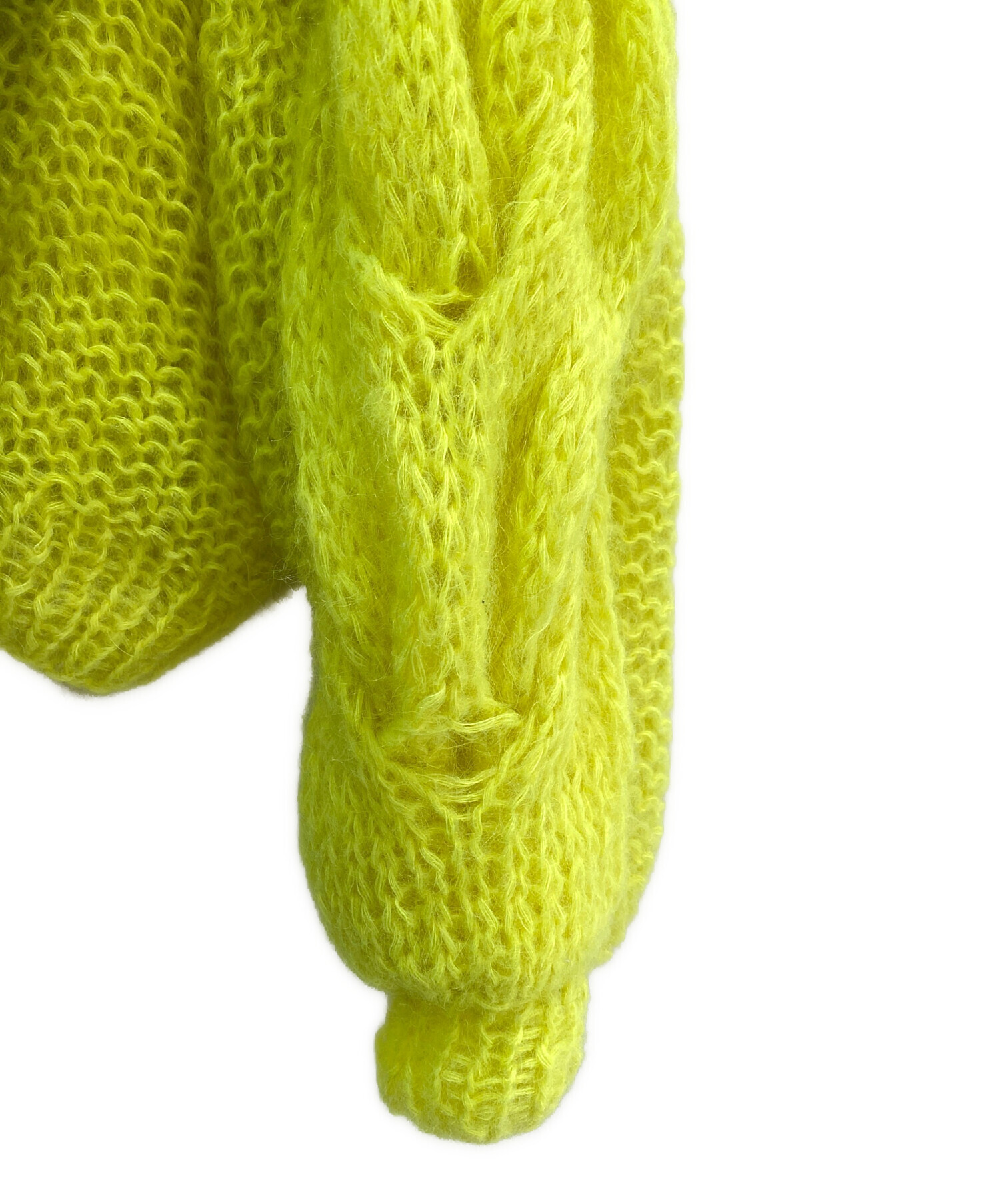 | 状態 | こちらの商品はあまり使用感の感じられない商品ですが、着用に伴う細かな傷、ヨゴレ、モヘア特有の毛羽立ちがございます。また、袖のサイドが複数箇所大きく穴の開いたデザインになっております。店頭にて展示販売を行っている為、記載に無い細かなキズ、汚れが見受けられる場合がございます。 |