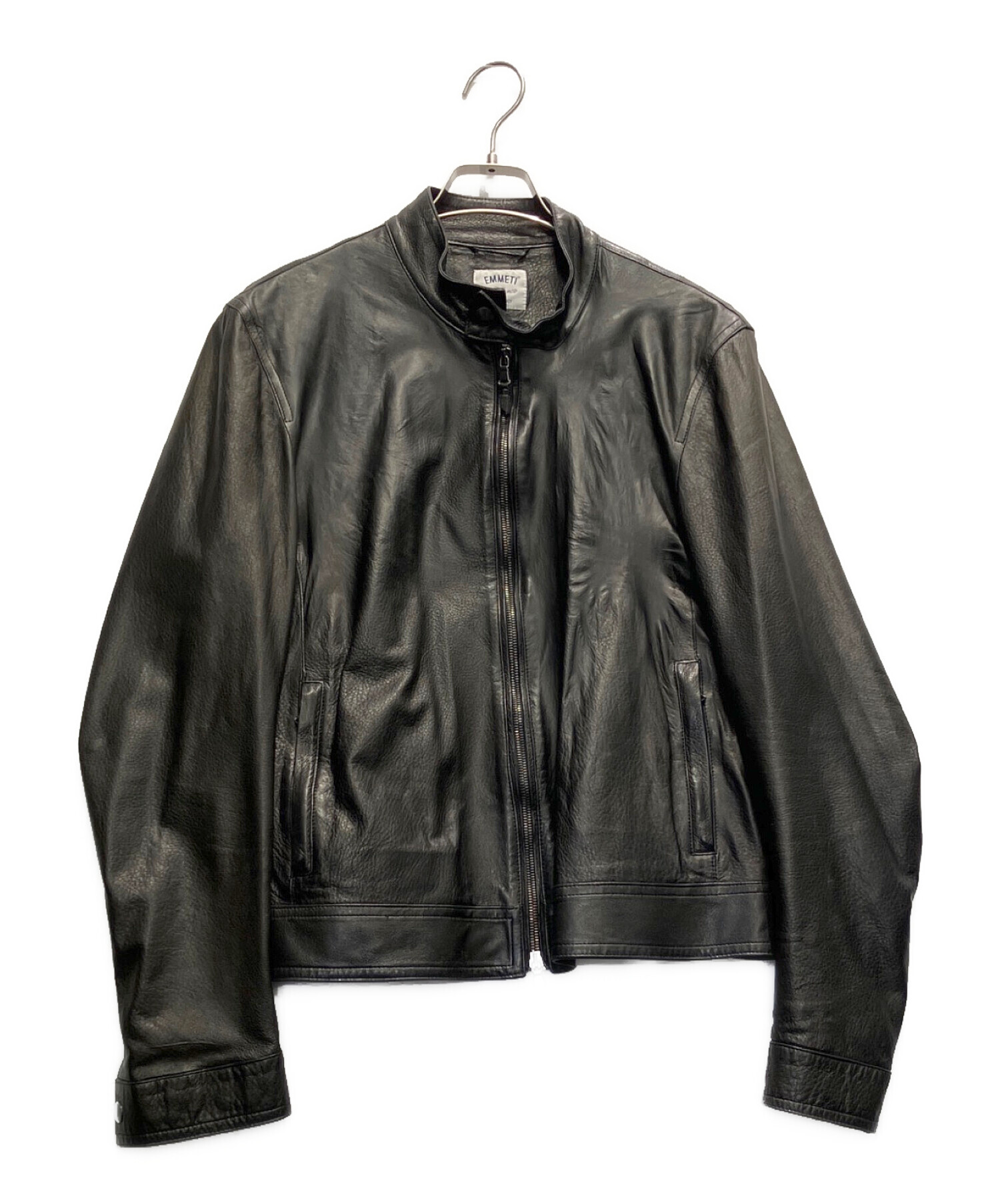 • EMMETI(エンメティ)EMMETI (エンメティ) BEAMS (ビームス) 別注シングルレザーライダース ブラック サイズ:50の古着・服飾アイテム 袖口ヨゴレ有
