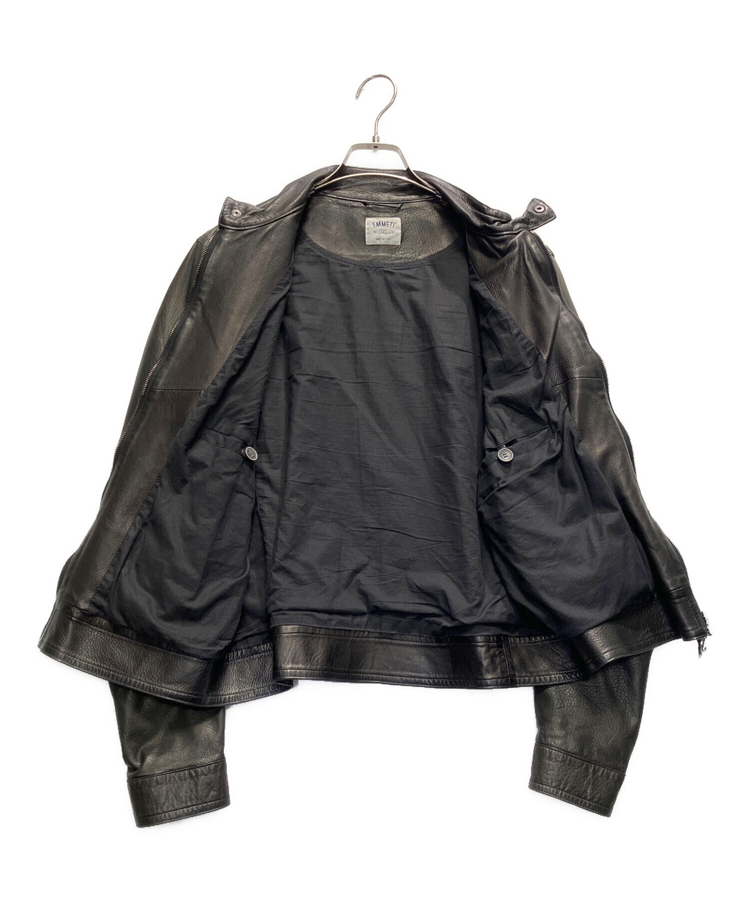 • EMMETI(エンメティ)EMMETI (エンメティ) BEAMS (ビームス) 別注シングルレザーライダース ブラック サイズ:50の古着・服飾アイテム