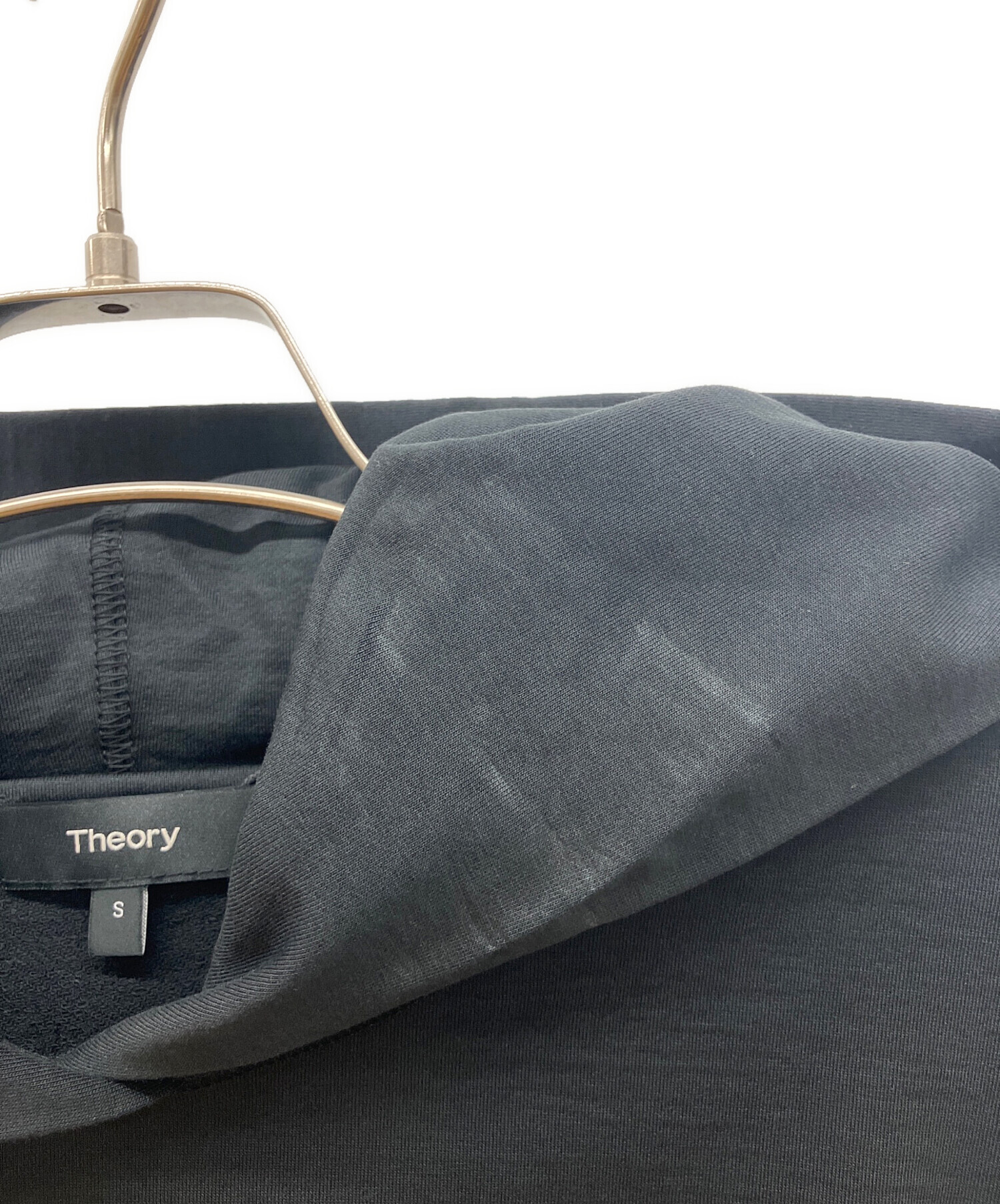 • theory(セオリー)theory (セオリー) コットンフーディー プルオーバー パーカー ブラック サイズ:Sの古着・服飾アイテム フード内側汚れ有