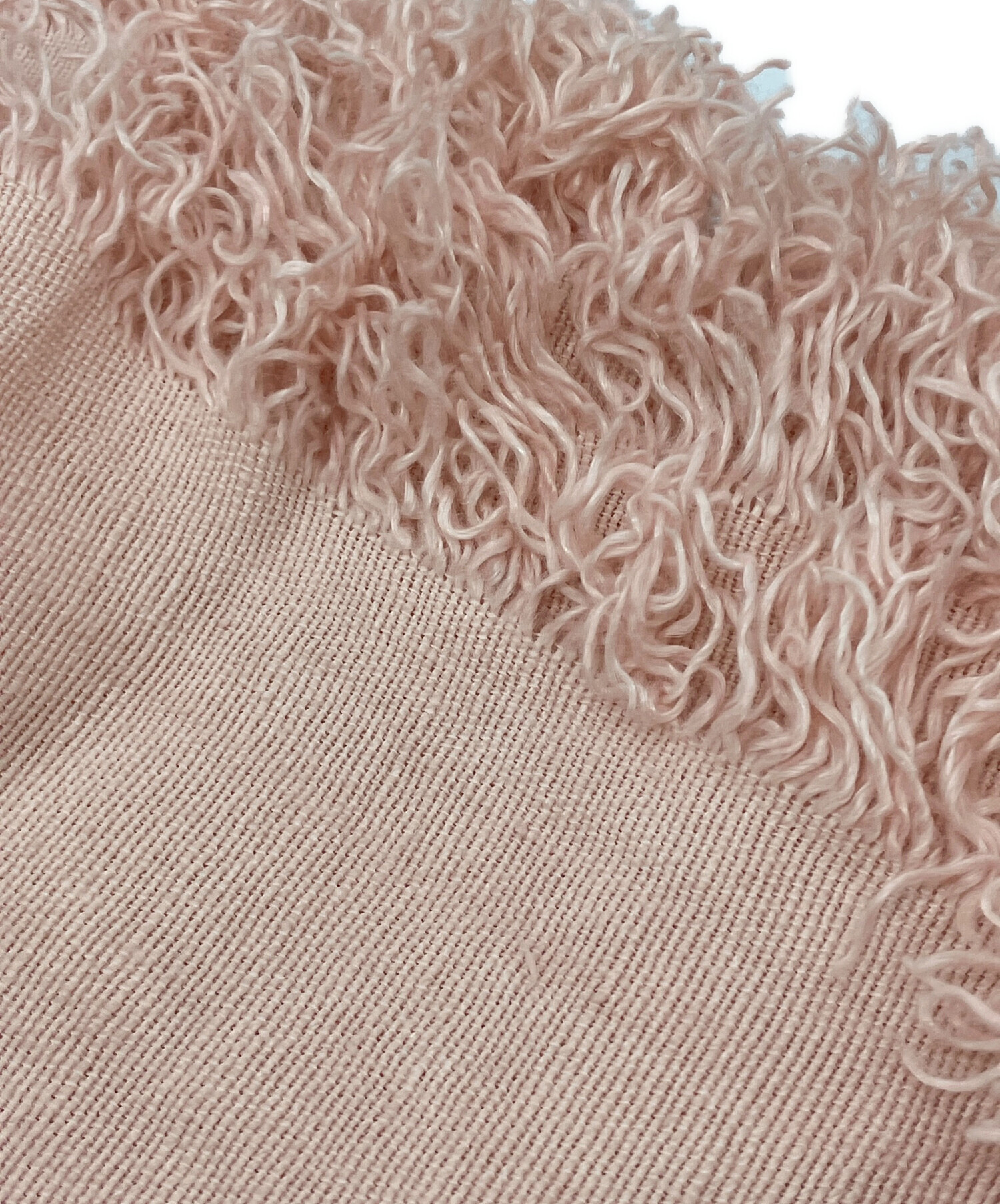 • ASAUCE MELER(アソースメレ)ASAUCE MELER (アソースメレ) 大判フリンジストール ピンクの古着・服飾アイテム 毛羽立ち有