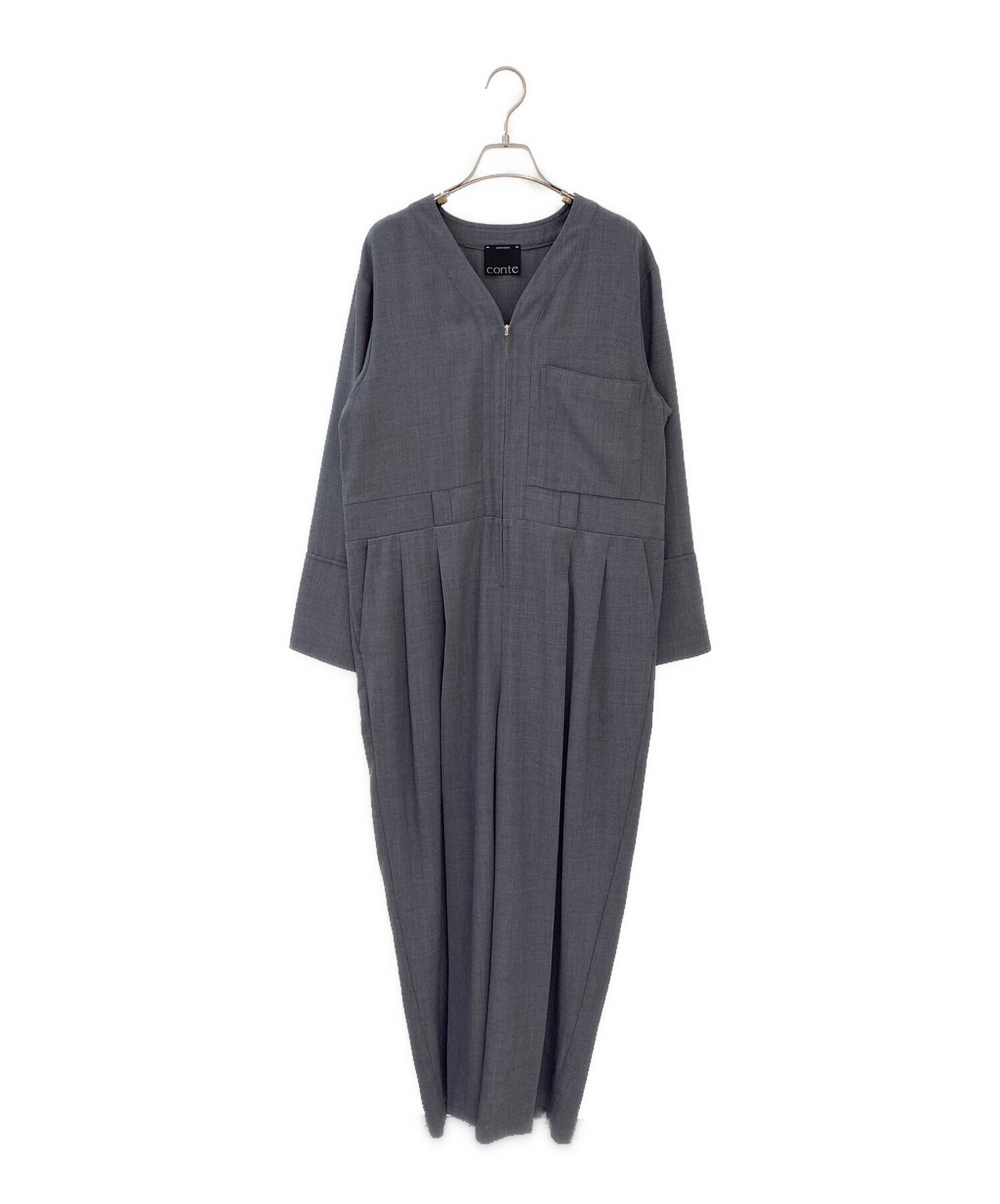 スタッフコメント ウール混の柔らかな生地が全身を優しく包み込み、すっきりとしたVネックのオールインワンは大人の女性らしい落ち着いた印象になります。タックやセンタープレスが入り、一枚できまるアイテムになります。
