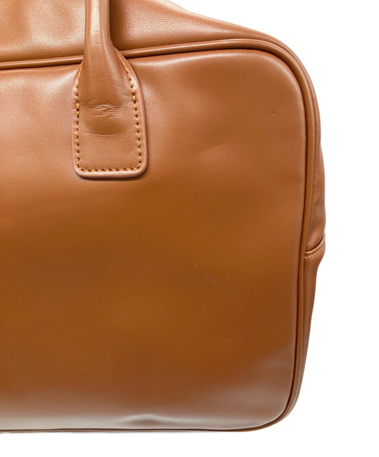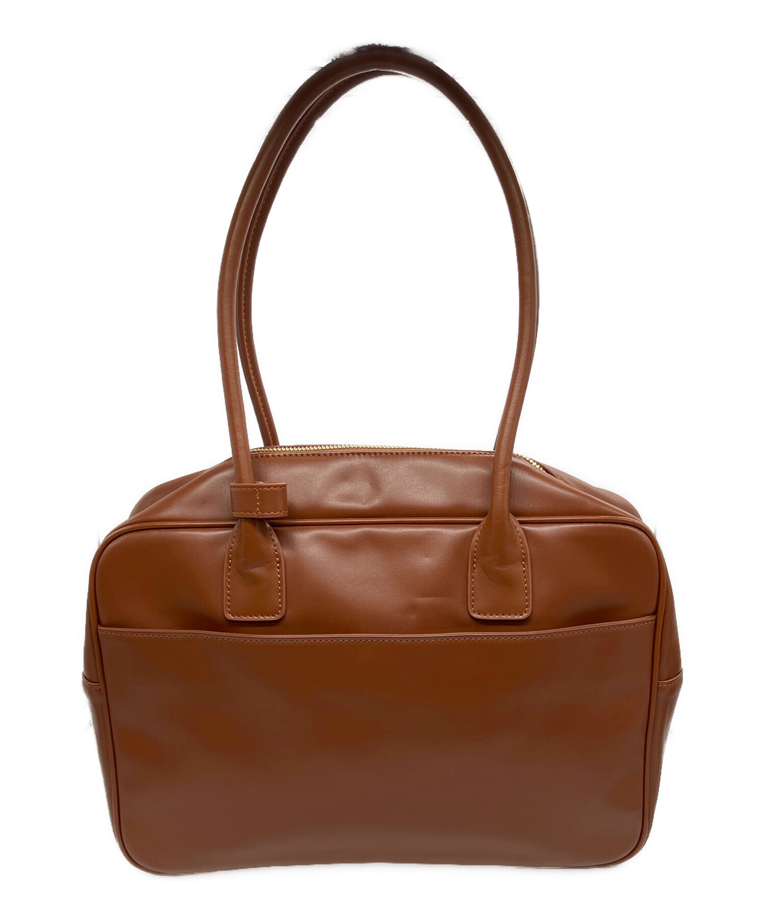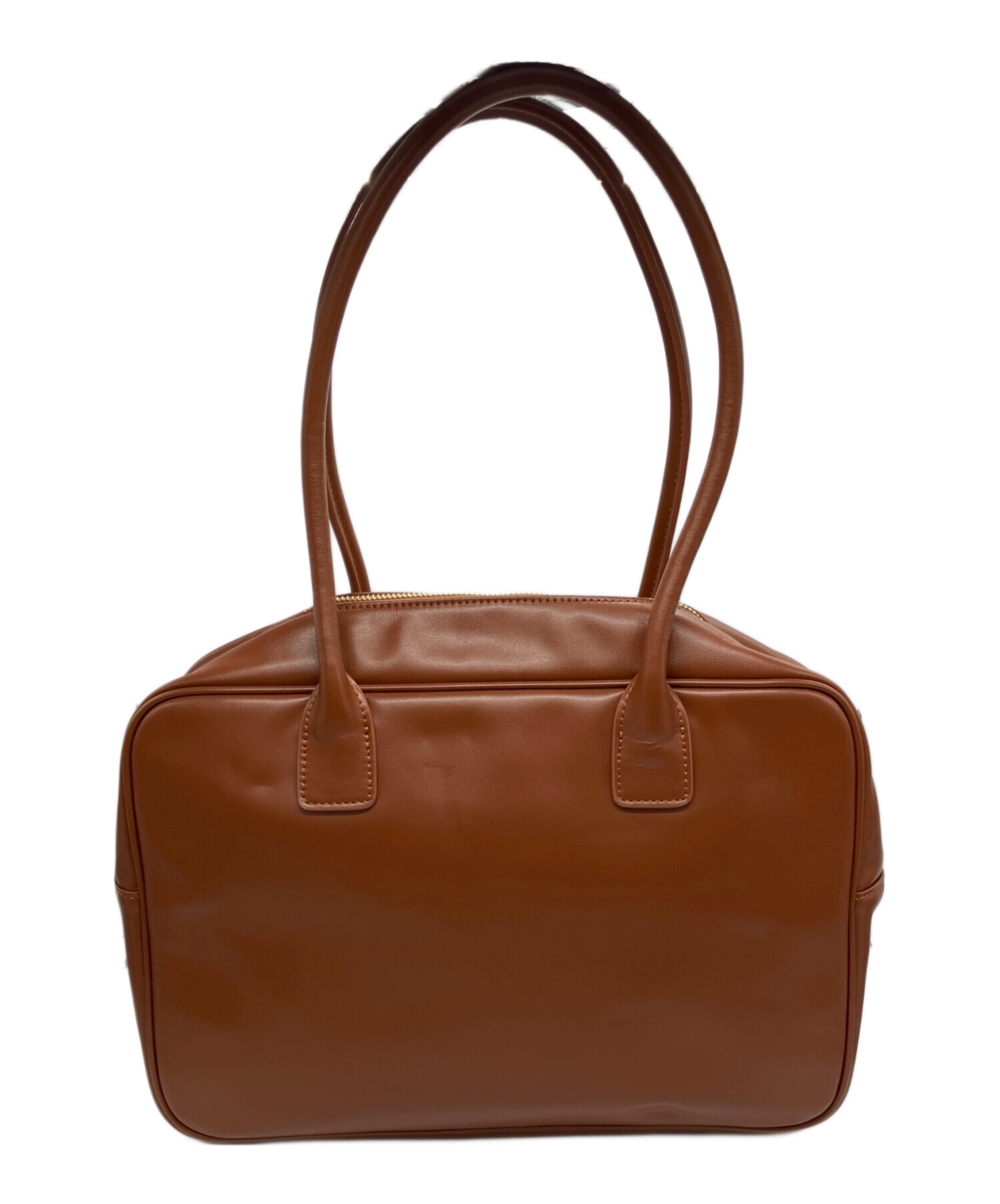 • SIMYON(シミョン)SIMYON (シミョン) レザースクエアバッグ ブラウンの古着・服飾アイテム ハンドル折ジワ有