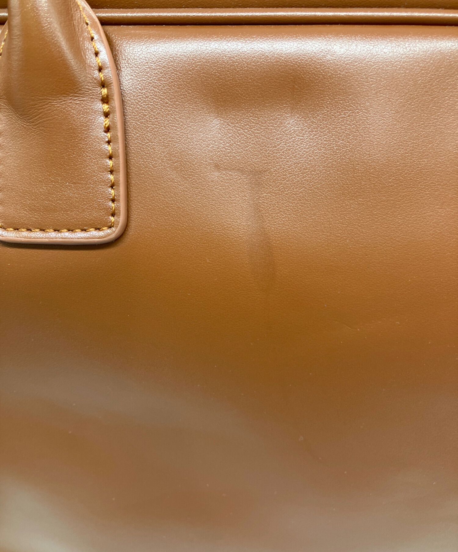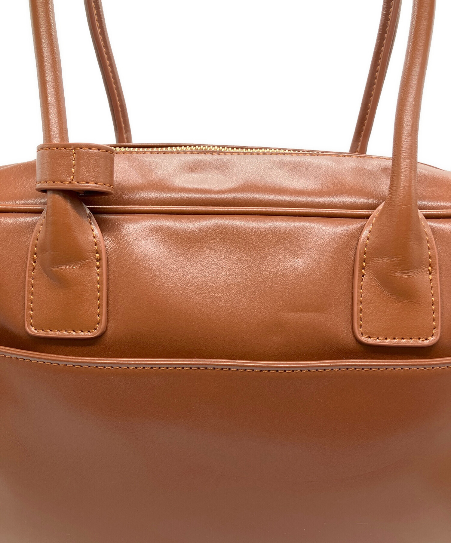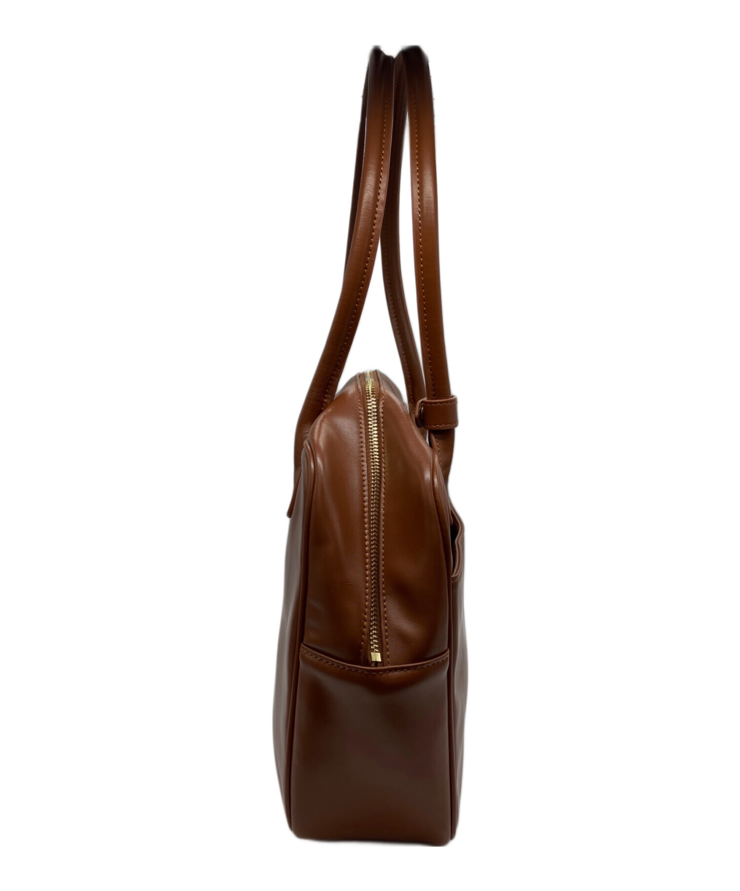 • SIMYON(シミョン)SIMYON (シミョン) レザースクエアバッグ ブラウンの古着・服飾アイテム ハンドル折ジワ有