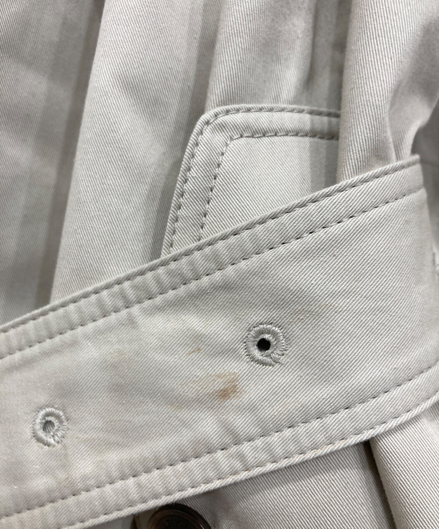 目立つシミや汚れ、におい等がある場合は商品画像や説明文にて極力表記させていただいておりますが、中古品という商品の特性上、全ての瑕疵や不備、洋服直し箇所を撮影・記載をすることは難しくなっております。また、ほとんどのアイテムは店頭と併売しておりますため、出品掲載時からコンディションが変動している場合もございます。あらかじめご了承くださいませ。