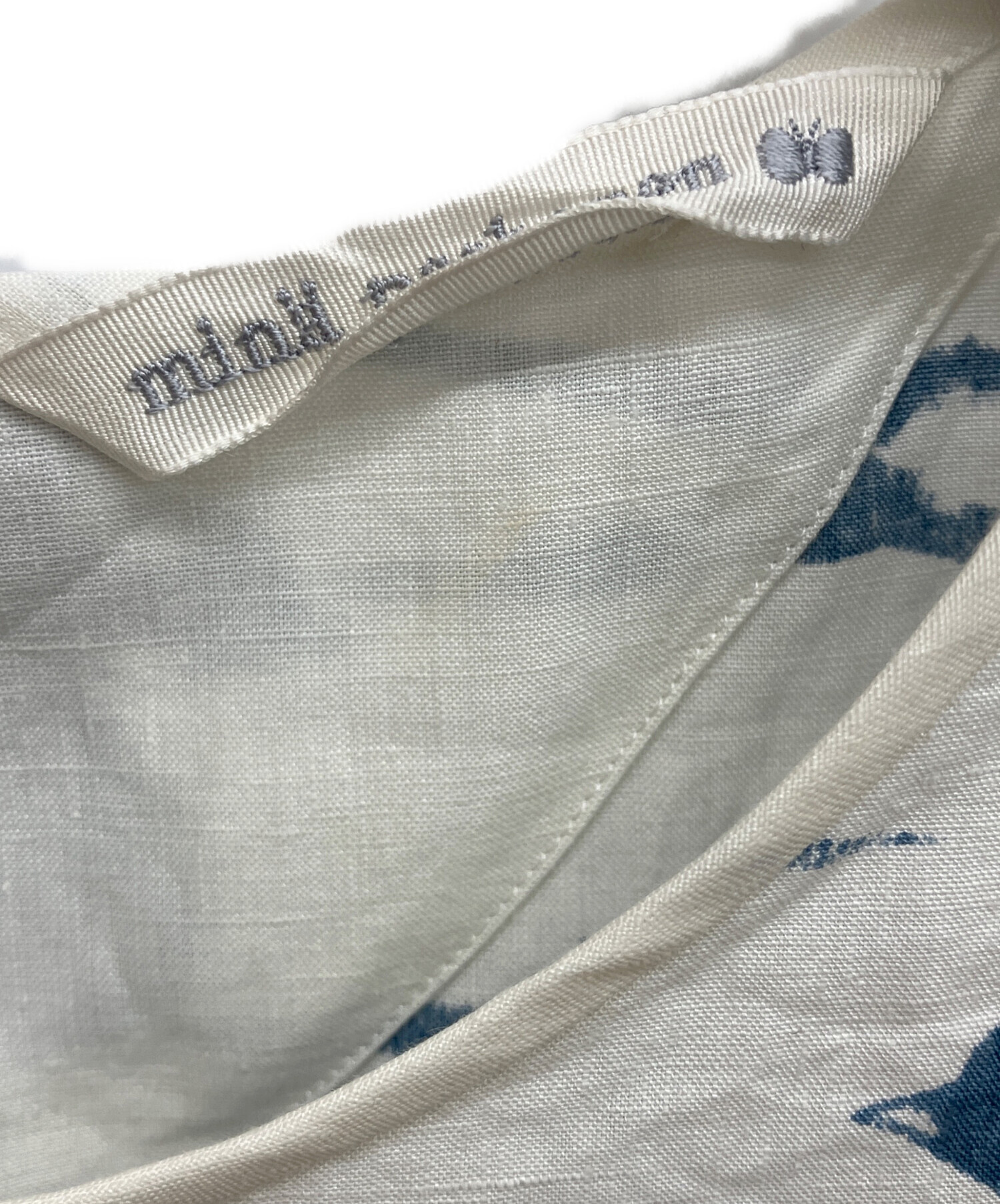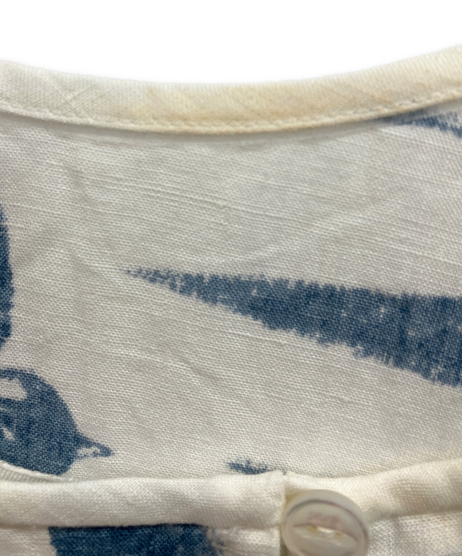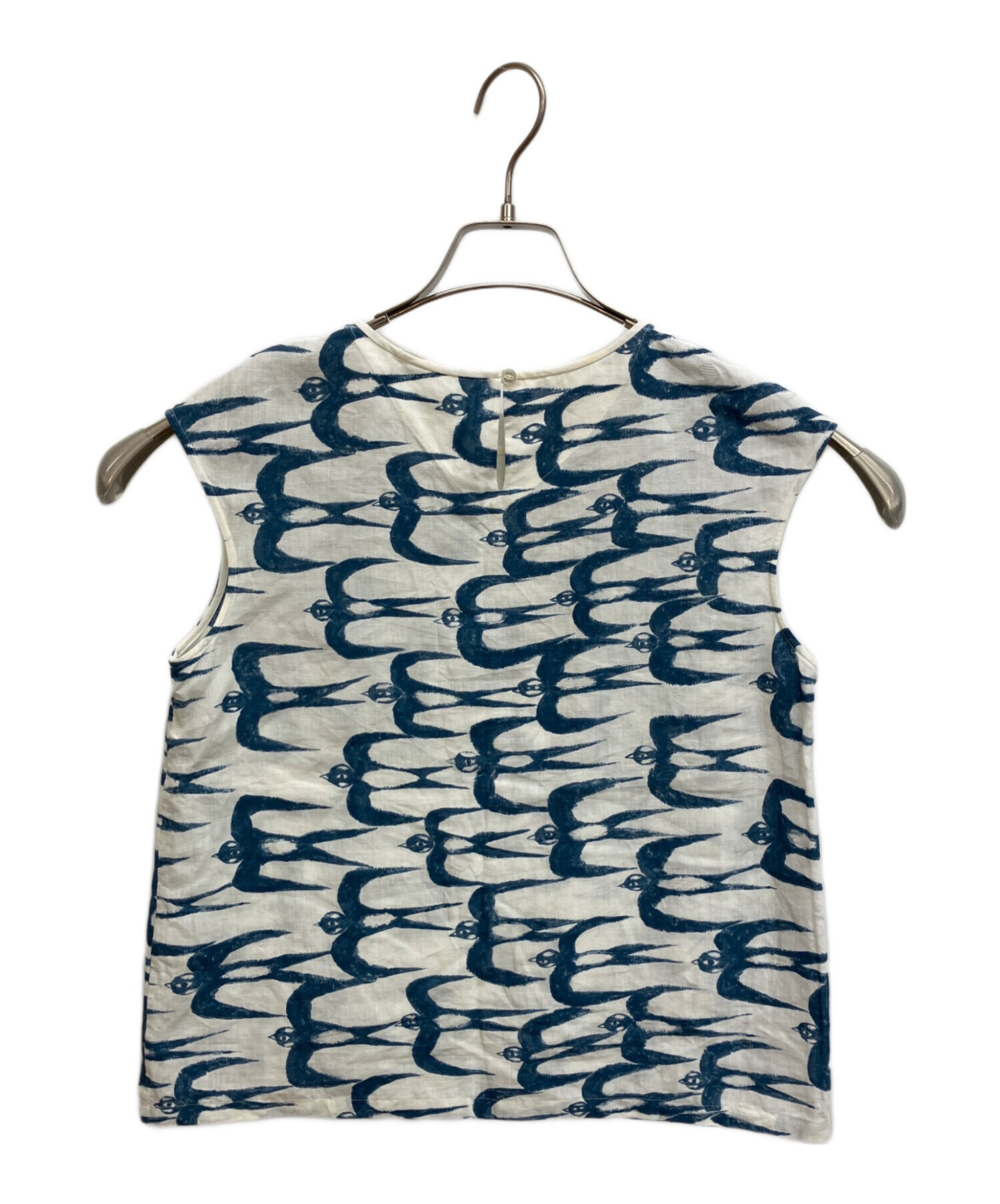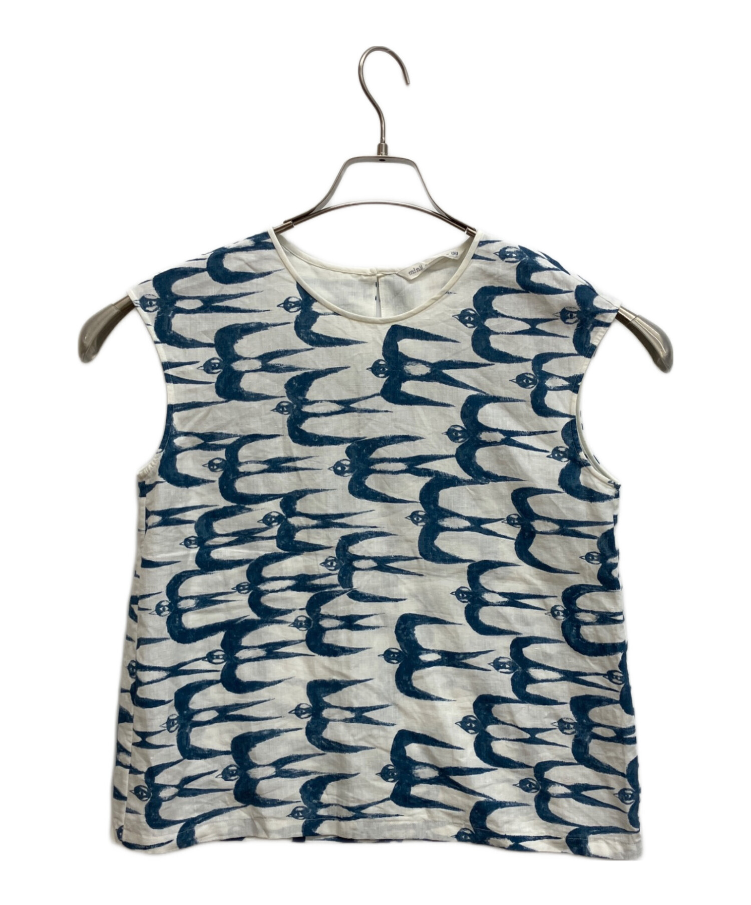 • mina perhonen(ミナ ペルホネン)mina perhonen (ミナ ペルホネン) hello swallow ノースリーブブラウス ホワイト×ブルー サイズ:38の古着・服飾アイテム ヨゴレ有