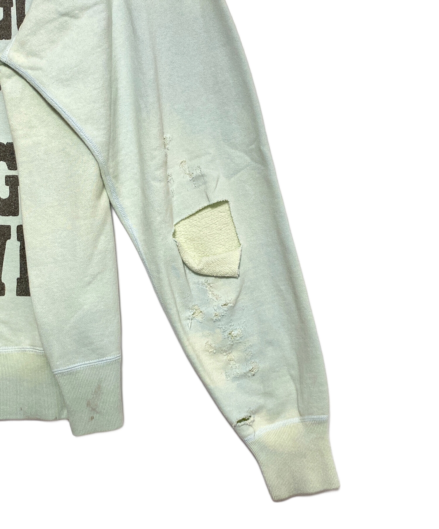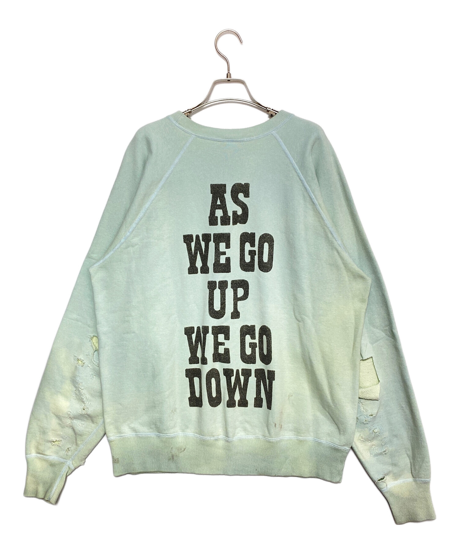 スタッフコメント フロントのグラフィックが圧倒的な存在感を放つクルーネックスウェット。擦れや色落ちの加工により、ヴィンテージスウェットのような風合いが魅力。1枚で着ても重ね着しても印象的なスタイリングが完成します。