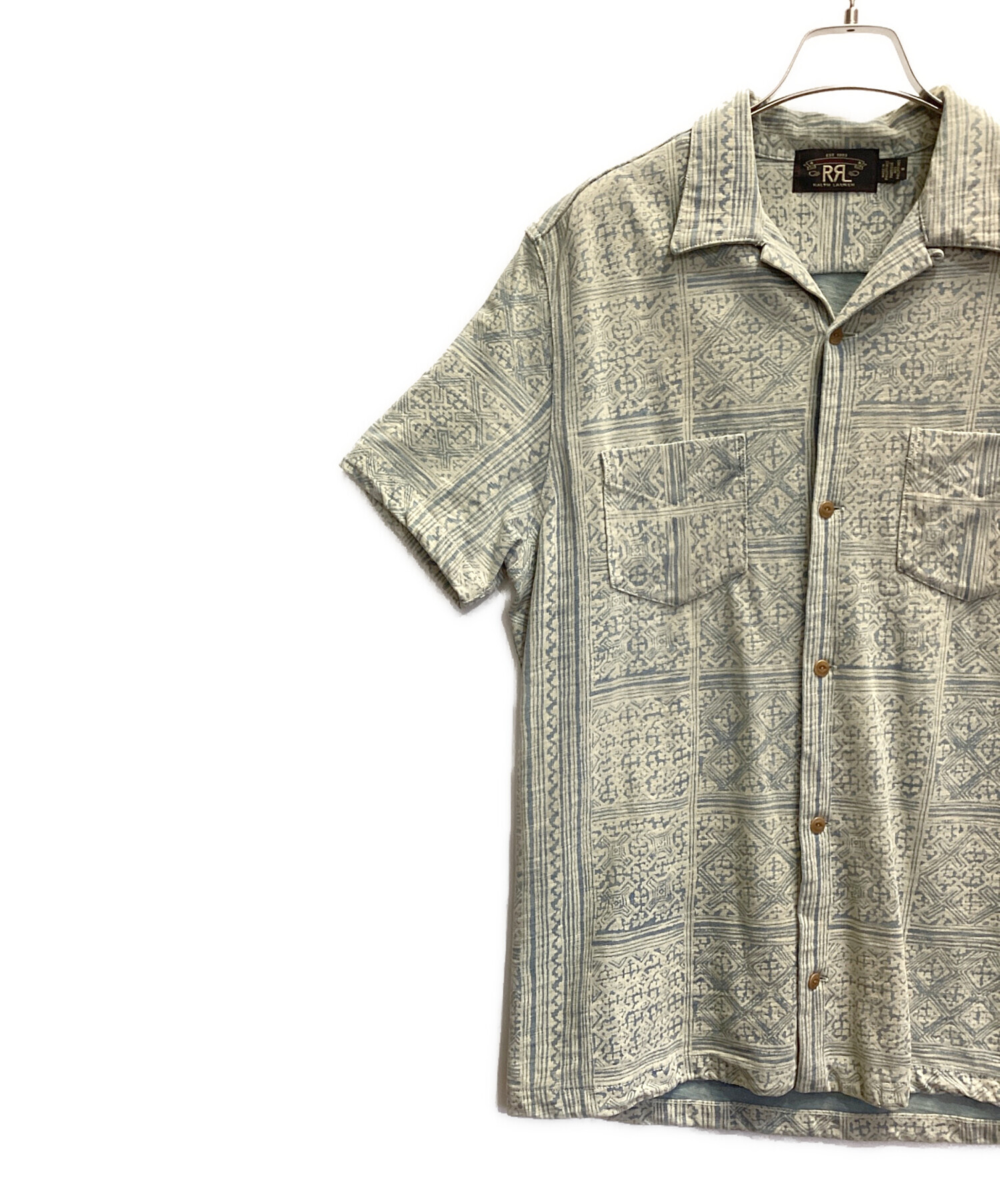 | スタッフコメント | RRL(ダブルアールエル)総柄オープンカラーシャツ ヴィンテージ感漂うRRLらしい一枚で、色褪せたようなインディゴブルート繊細な幾何学模様が渋さと洗練さを両立させています。開襟デザインと程よく抜けたシルエットが、大人の余裕を感じさせるリラックスしたリゾートスタイルを演出します。 |