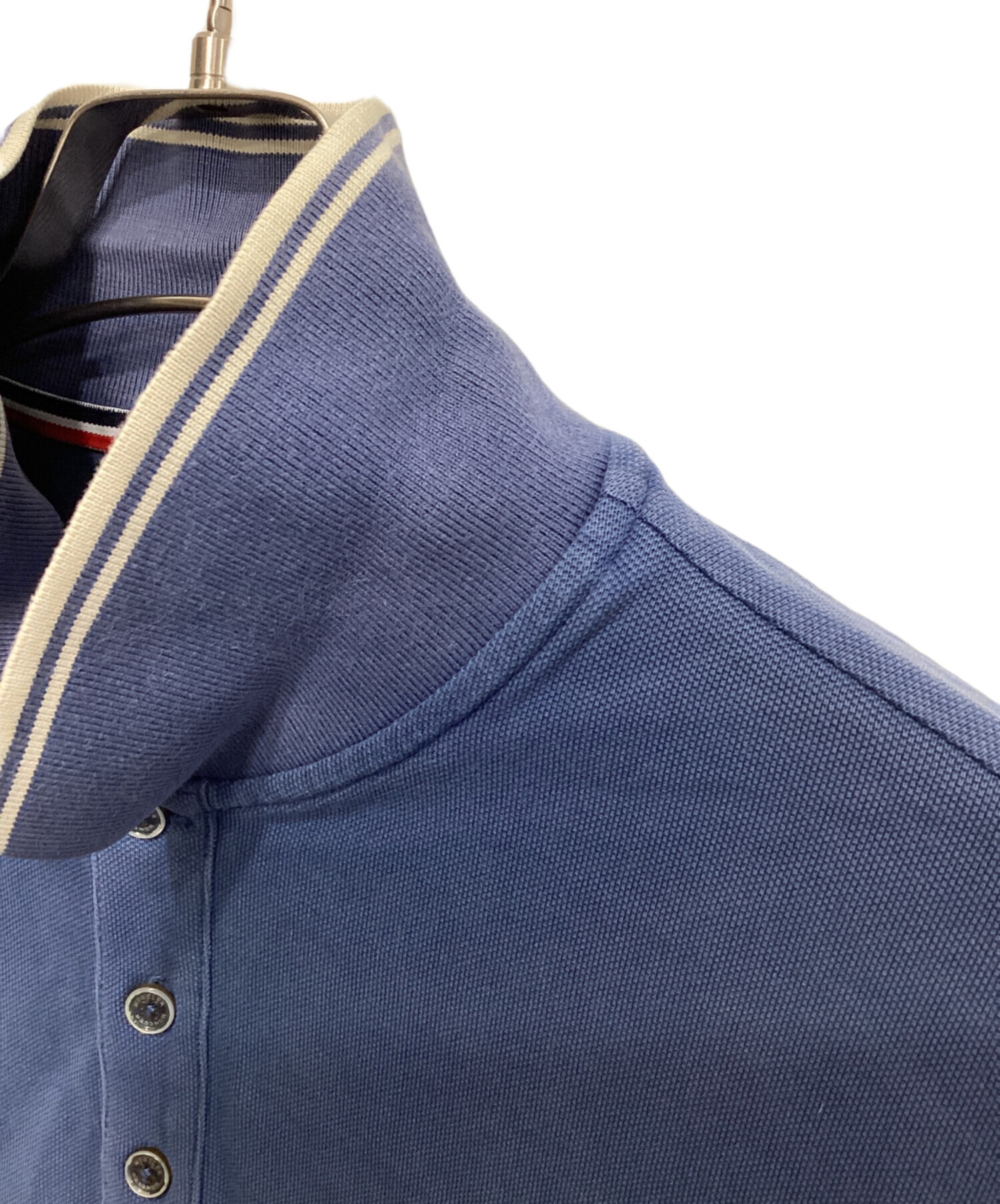 • MONCLER(モンクレール)MONCLER (モンクレール) ロゴワッペンポロシャツ ブルー サイズ:Lの古着・服飾アイテム 襟部分スレアリ