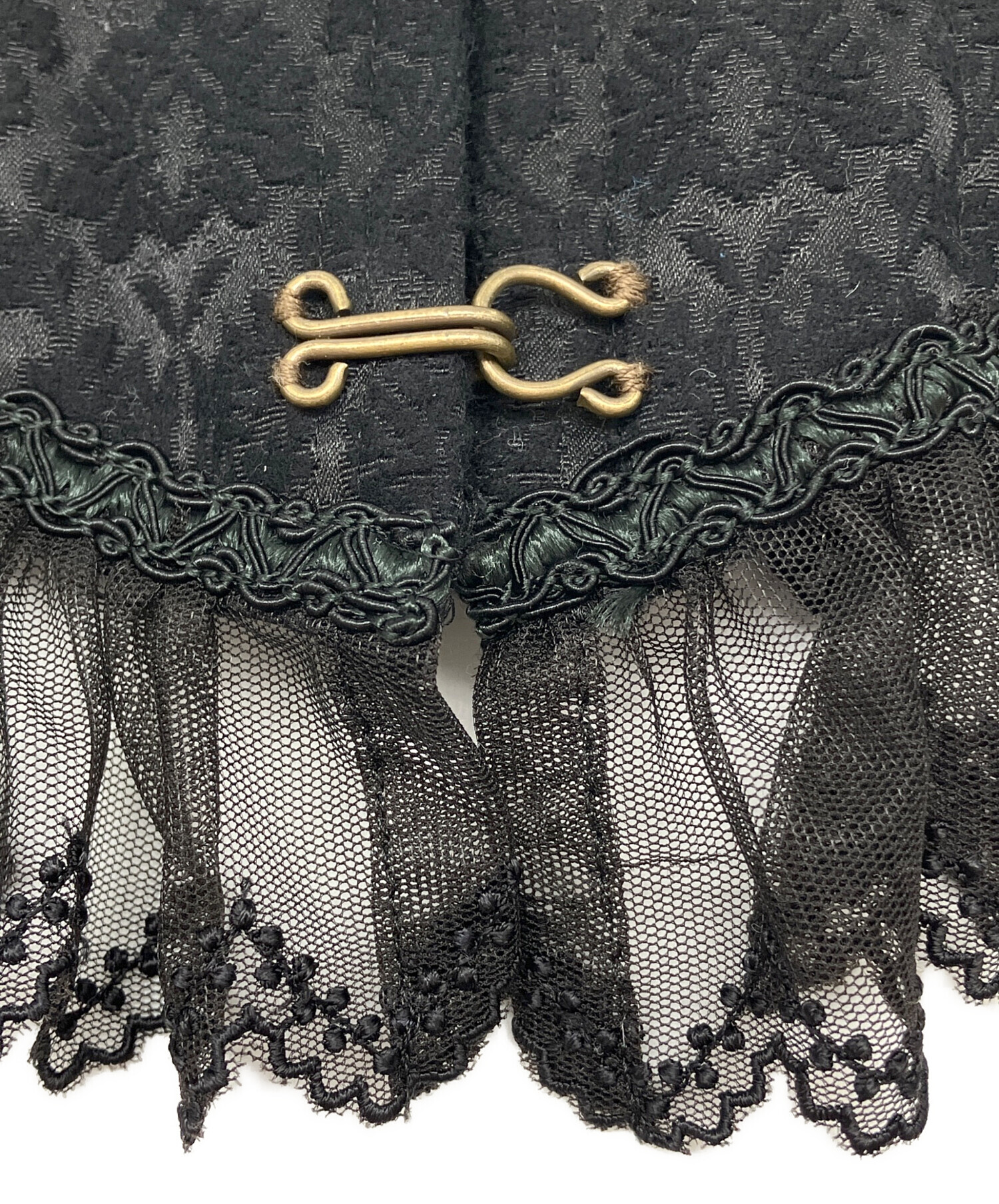 | 素材 | 表地: 綿 62% ポリエステル 36% ポリウレタン 2% 裏地: 綿 100% ブレード: ポリエステル 100% レース 基布: ナイロン 100% 刺しゅう糸表面: レーヨン 100% 刺しゅう糸裏面: 綿 100% テープ: ポリエステル 100% リボン: ポリエステル 100% 金属ボーン |