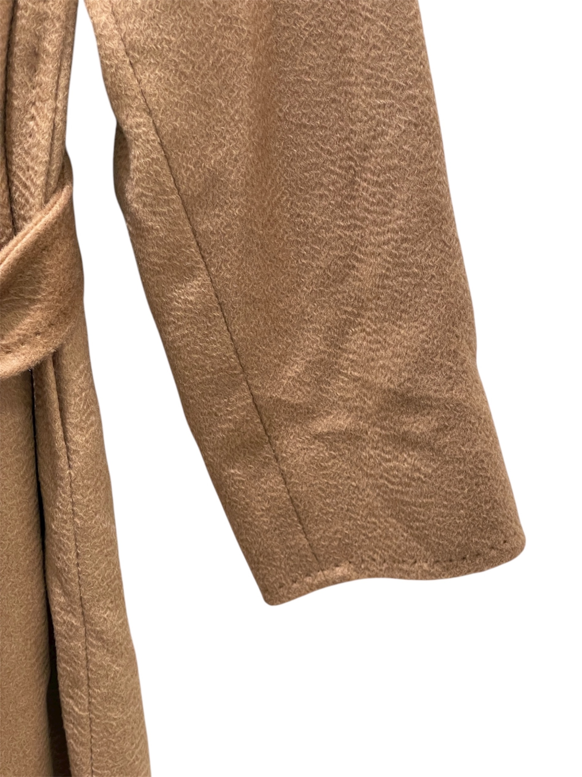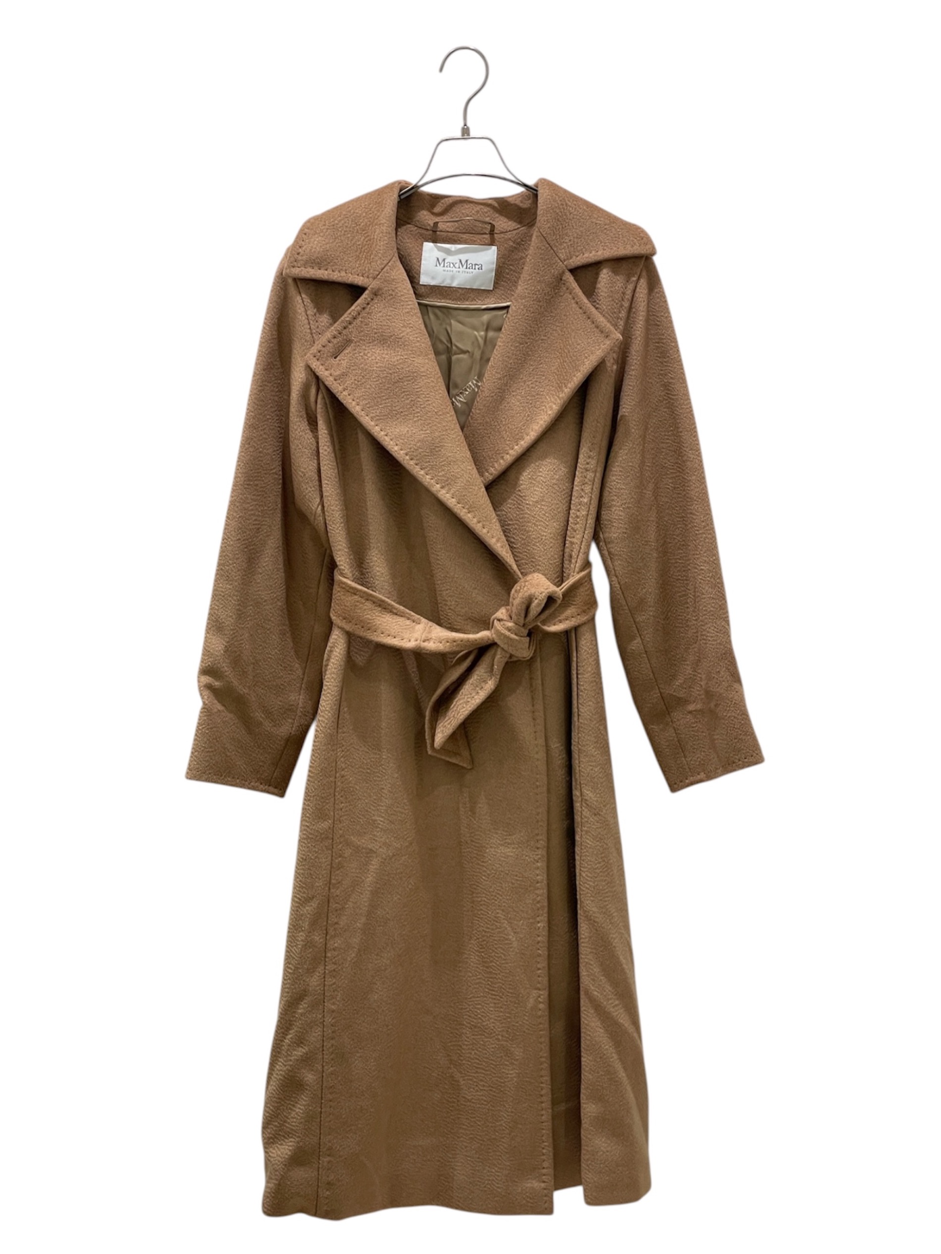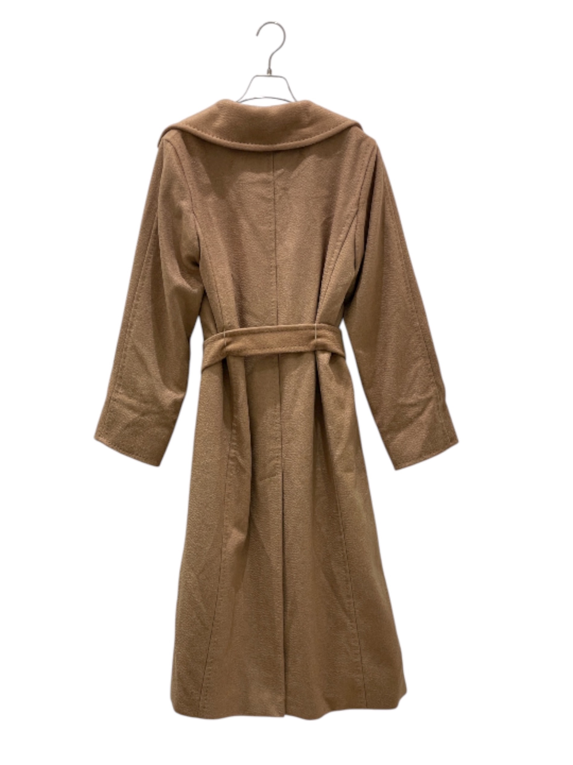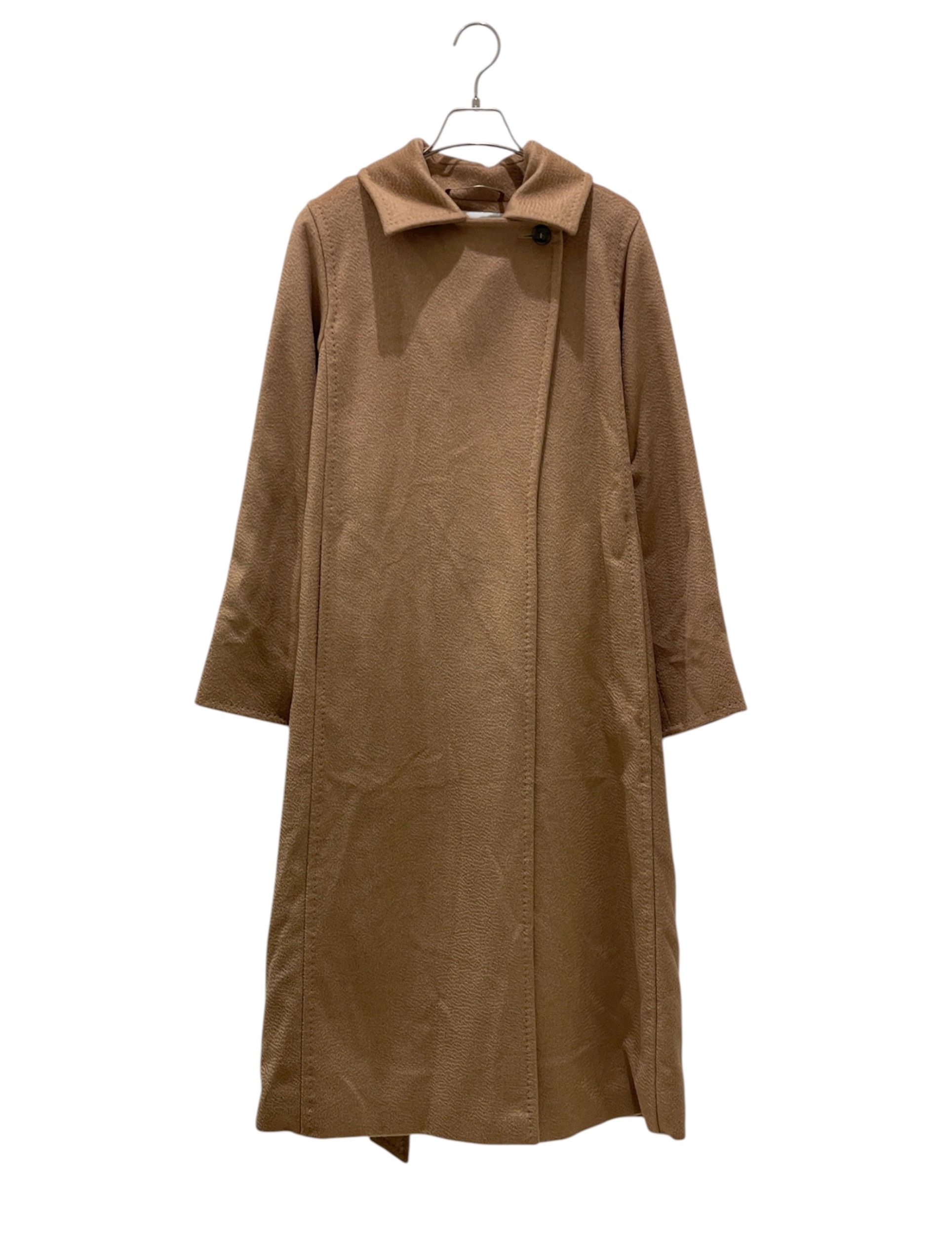 スタッフコメント 上質なキャメルを使用し、柔らかな手触りと自然な光沢が魅力的なコートでございます。ワイドラペルのラップデザインにウエストベルトが付いており、女性らしいシルエットが特徴です。シンプルながら洗練されたデザインで、長く愛用できるコートですので大変おすすめです。