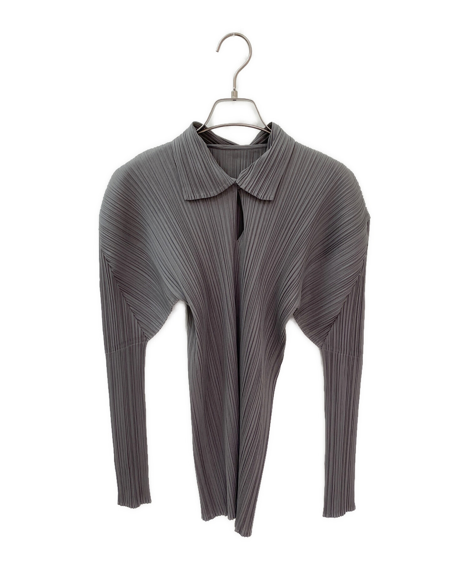 • PLEATS PLEASE(プリーツプリーズ)PLEATS PLEASE (プリーツプリーズ) プルオーバーシャツ グレー サイズ:3の古着・服飾アイテム フロント汚れ有