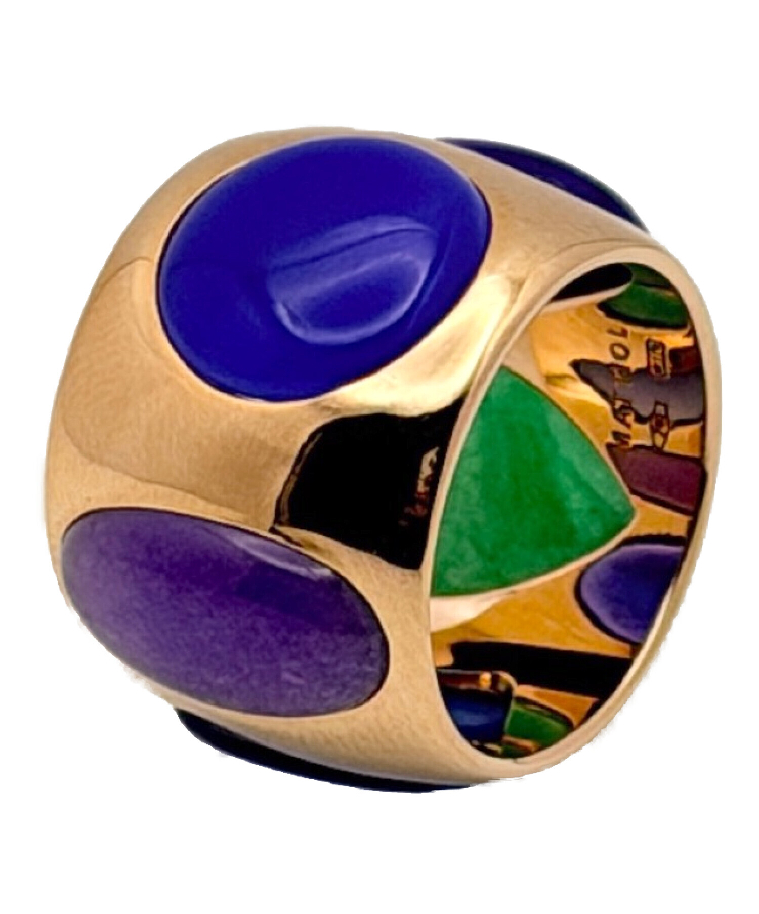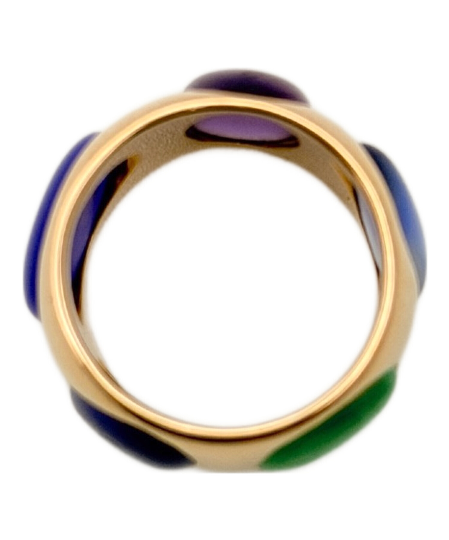 | スタッフコメント | 様々なカラーのストーンが施されたカラーストーンリングでごいます。マルチカラーのストーンとK18ゴールドの組み合わせが上品な印象を与え、華やかさと高級感を演出いたします。存在感のあるデザインで、身に付けるだけで手元を華やかに彩り、コーディネートのアクセントとしても活躍するアイテムです。 |