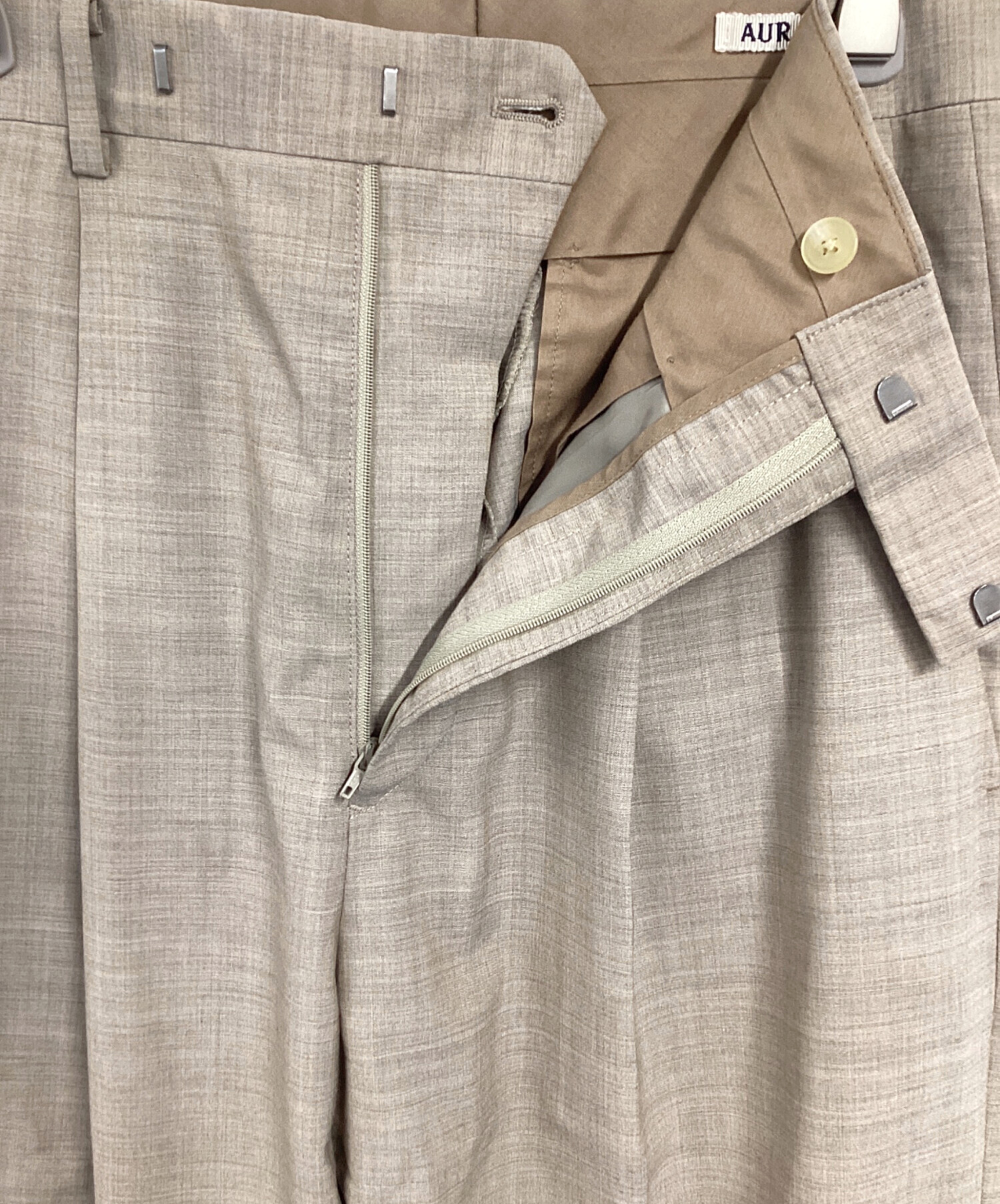 | スタッフコメント | AURALEE(オーラリー)のSUPER FINE TROPICAL WOOL SLACKSでございます。ベージュカラーが優しい印象を与えつつも、上品さも兼ね備えております。上質なウールを使用しており、高級感を感じられる逸品でございます。 |