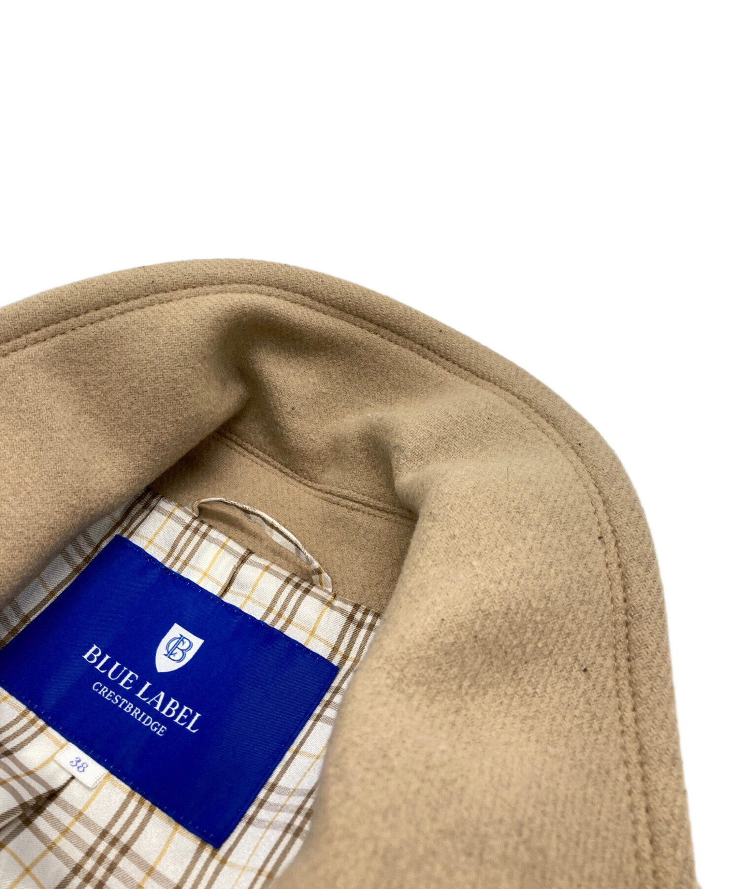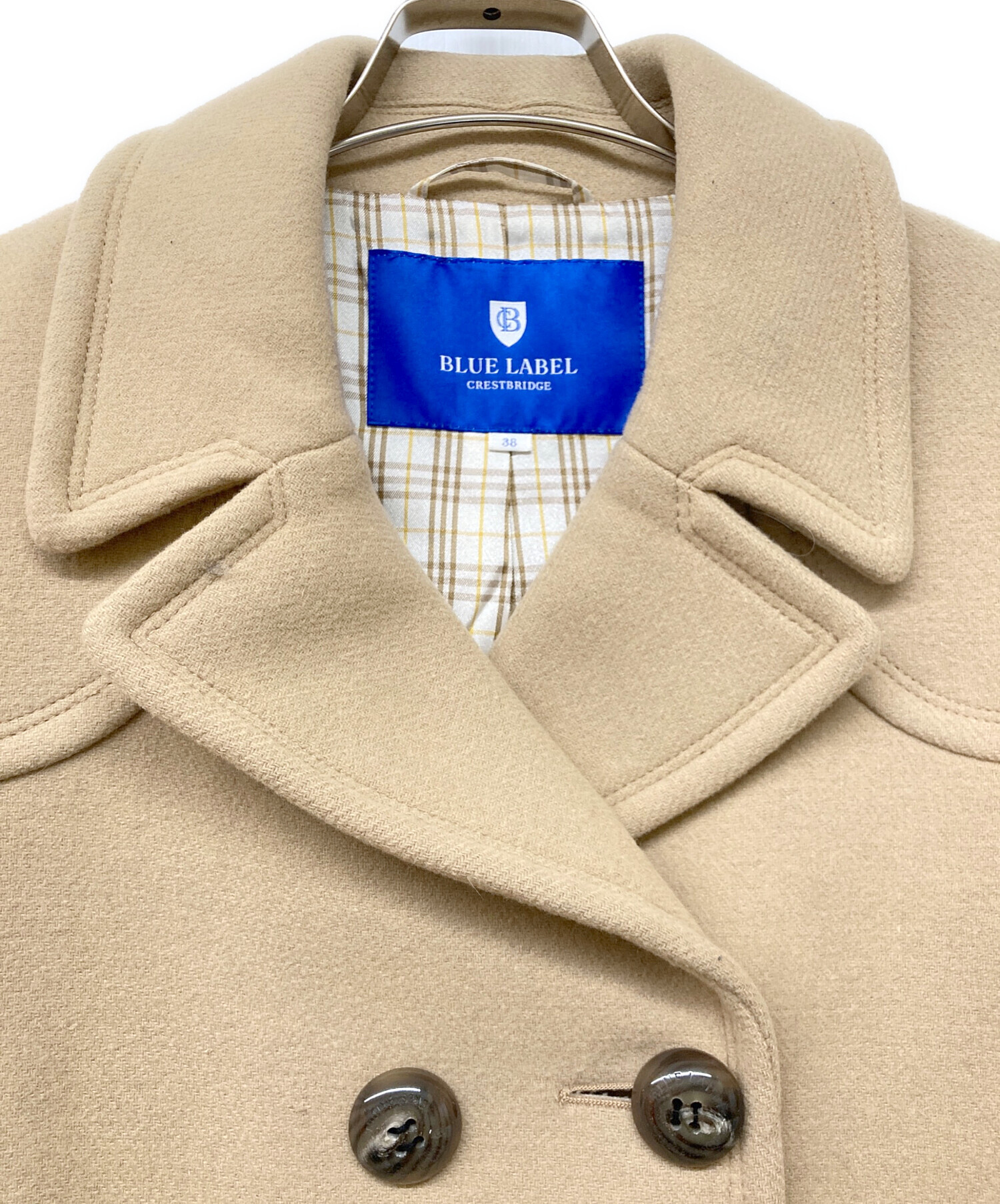 • BLUE LABEL CRESTBRIDGE(ブルーレーベルクレストブリッジ)BLUE LABEL CRESTBRIDGE (ブルーレーベルクレストブリッジ) ウールブレンドコート ベージュ サイズ:38の古着・服飾アイテム 襟周り毛羽立ち有