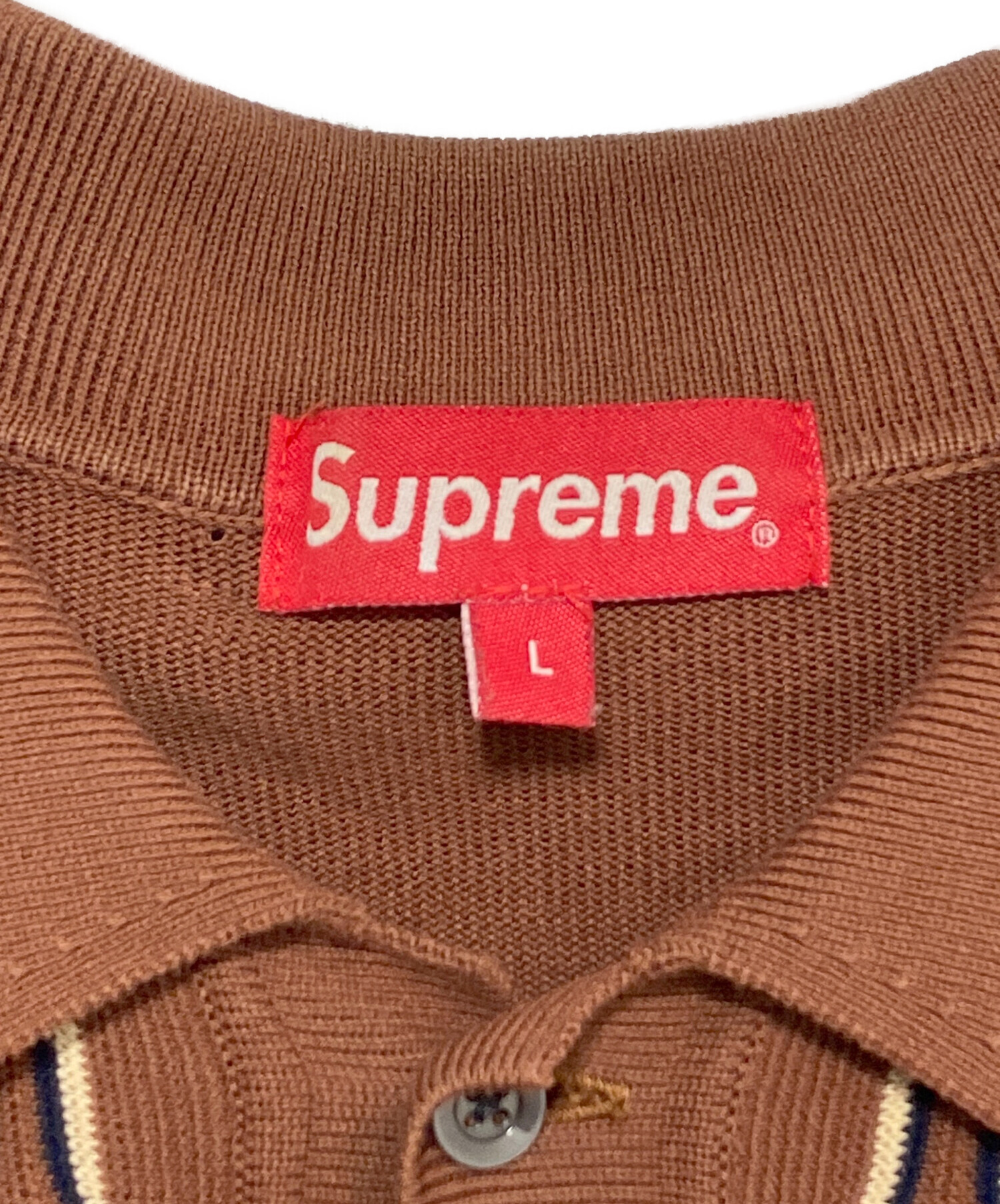 | スタッフコメント | 縦に走るストライプ柄が印象的なSUPREMEのニットL/Sポロ。落ち着いた配色と柔らかな編み地が上品な雰囲気を演出し、程よくゆとりのあるシルエットで着用しやすいデザイン。装いにアクセントを加えてくれる一着です。 |